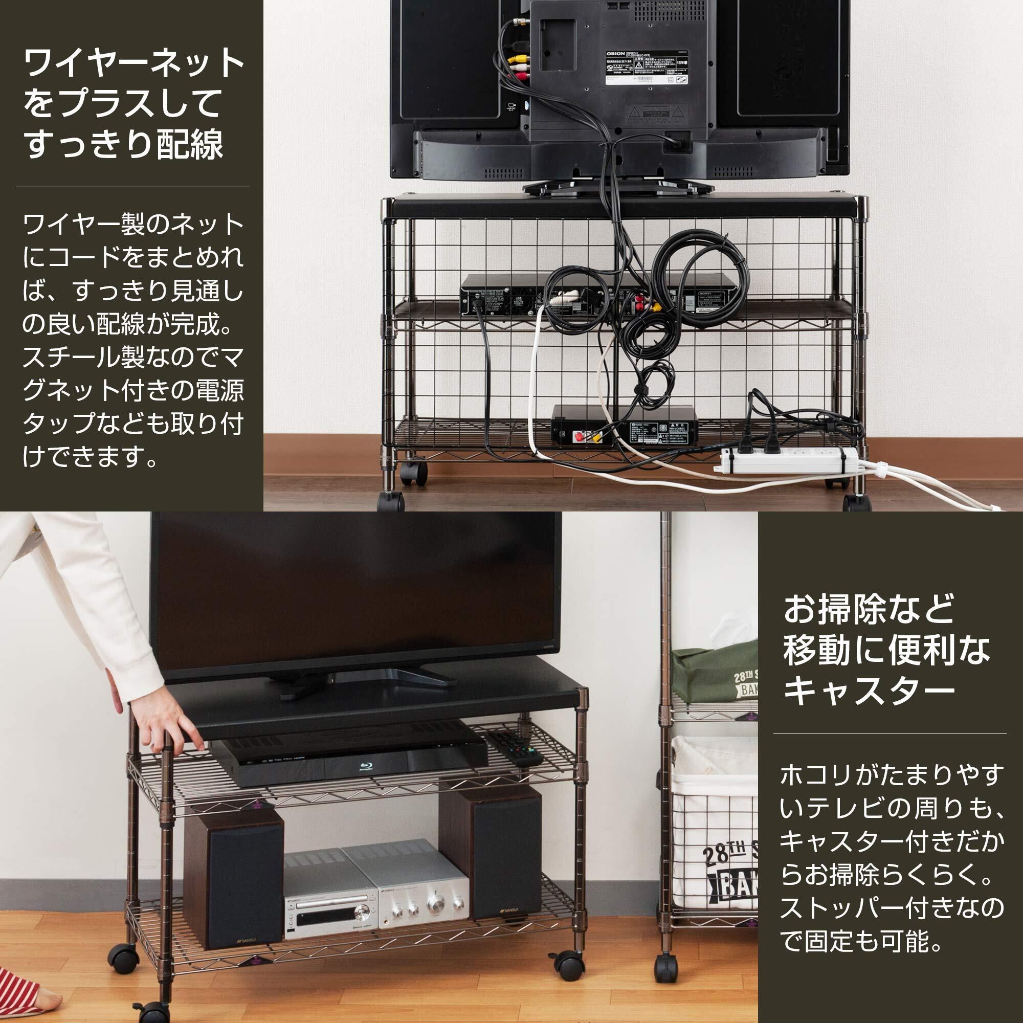 ドウシシャ ルミナス ブラック 幅60 3段 テレビ台 テレビラック ローボード 艶のある黒色 キャスター付き スチールラック 収納棚 棚板 スチール天板 シェルフ 幅59.5×奥行39.5×高さ51cm 耐荷重240kg ポール径19mm BN5160-3M