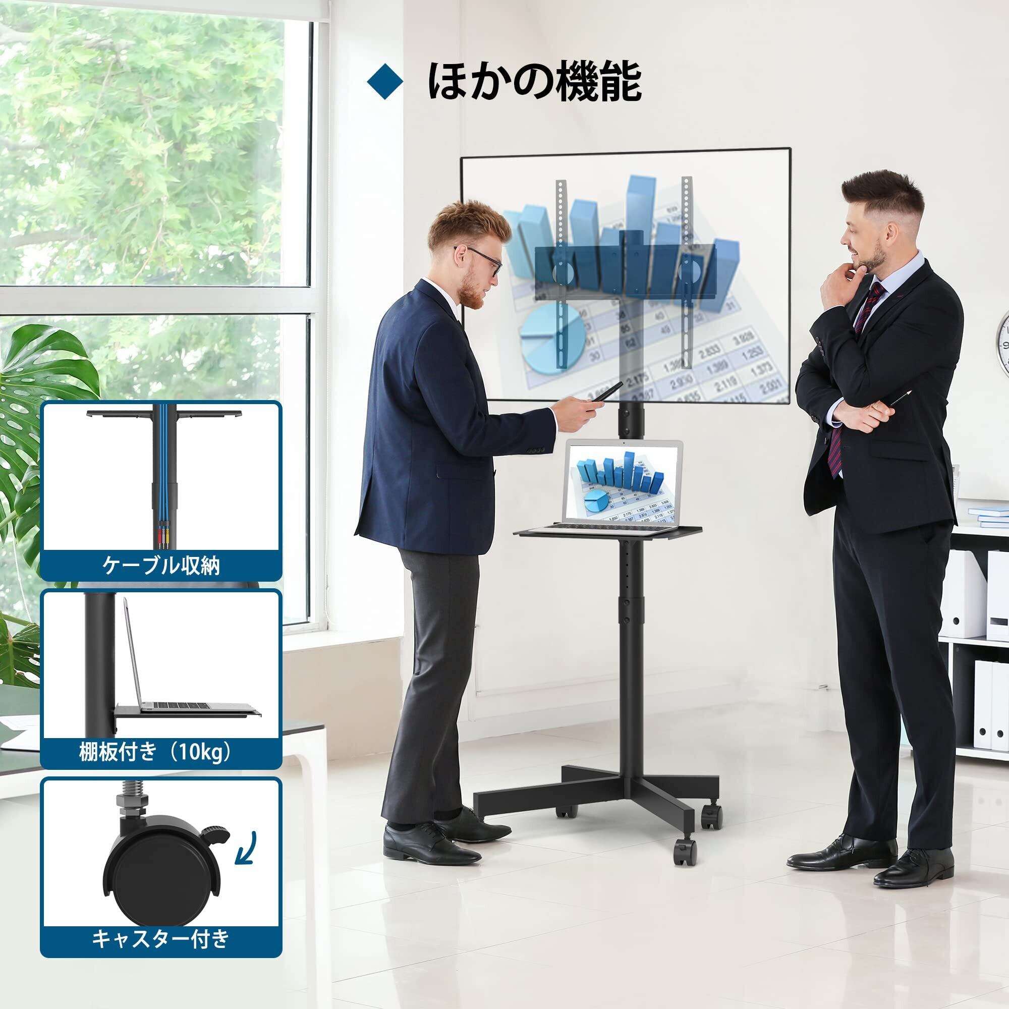 1homefurnit テレビスタンド 移動式 壁寄せテレビスタンド 23-55インチ液晶テレビに対応 ハイタイプ キャスター付き 高さ調整可能 耐荷重40kg 業務用スタンド 省スペース 黒い 適格請求書発行可