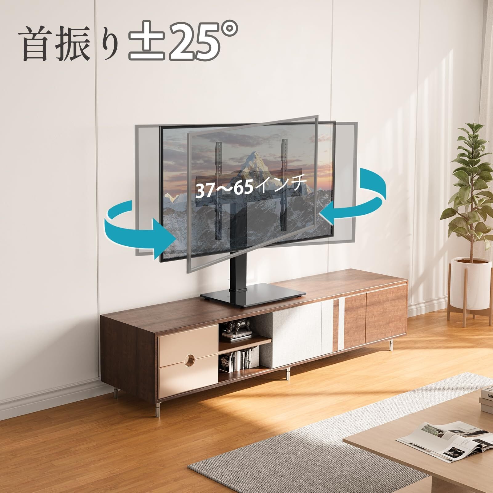 【ラック回転・高さ調節】テレビと金具の取り付け位置により、9段階の高さ(541~751mm)を選択して取り付けることができます。上向き8°、左右方向へ±25°で回転でき、気楽な視聴環境を構築します。