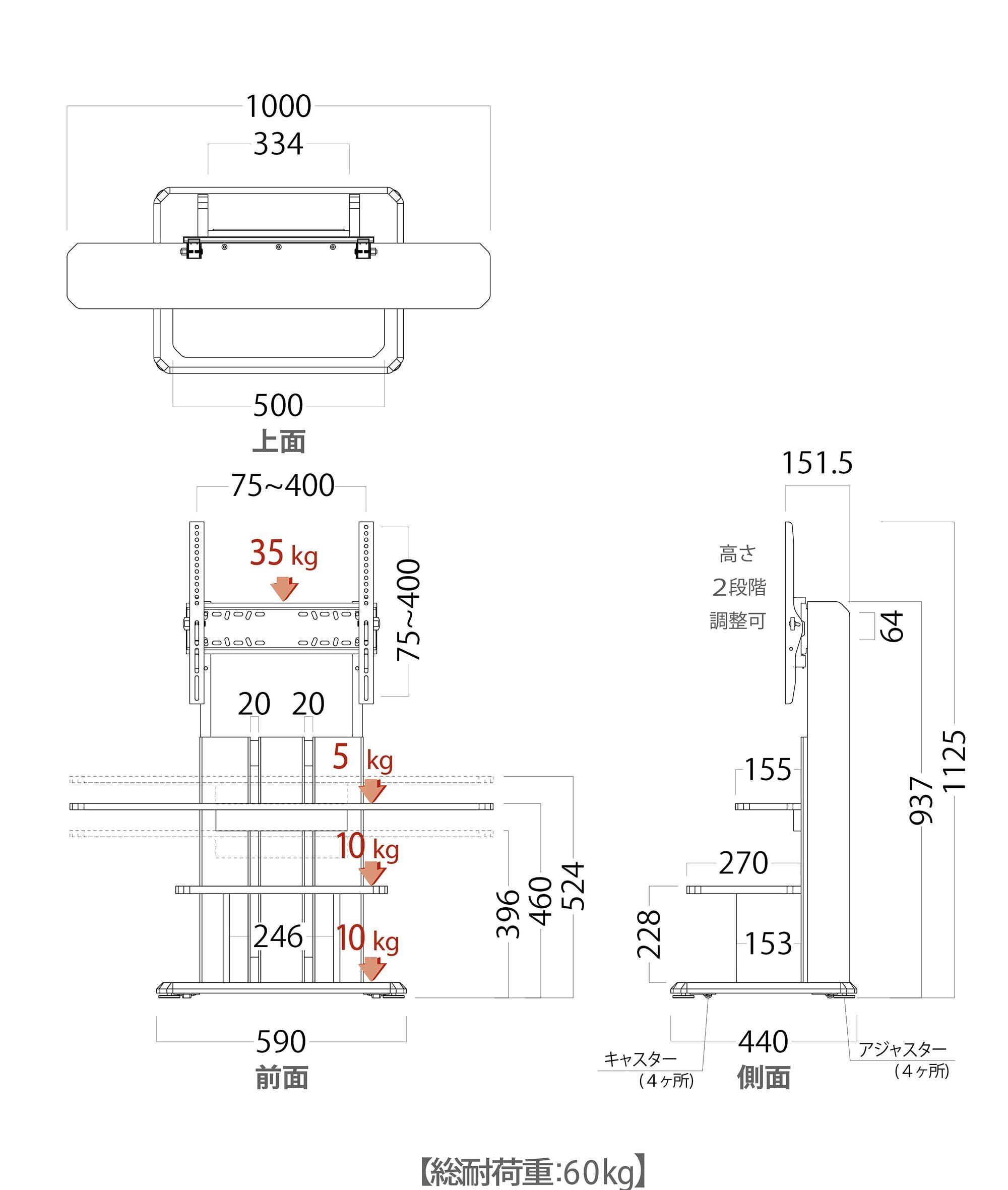 朝日木材加工(Asahiwood) 壁寄せ テレビ スタンド WS-C style 24~55型 幅59㎝ ダークブラウン チルト機能付 キャスター付 WS-C590-DB