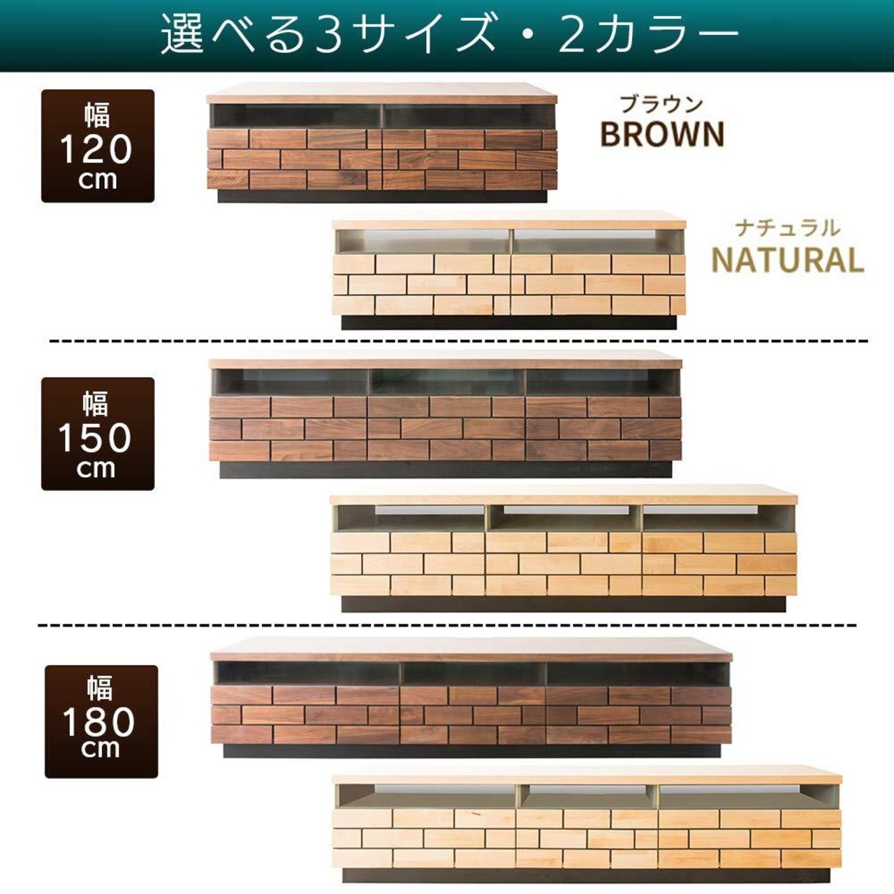 【60-65型推奨】 アイリスプラザ テレビ台 テレビボード ローボード 幅180cm 奥行40cm 高さ39cm 50型 55型 ナチュラル 天然木 引き出し付き ブロックデザイン 扉付 完成品 耐荷重30kg T-BTV-180