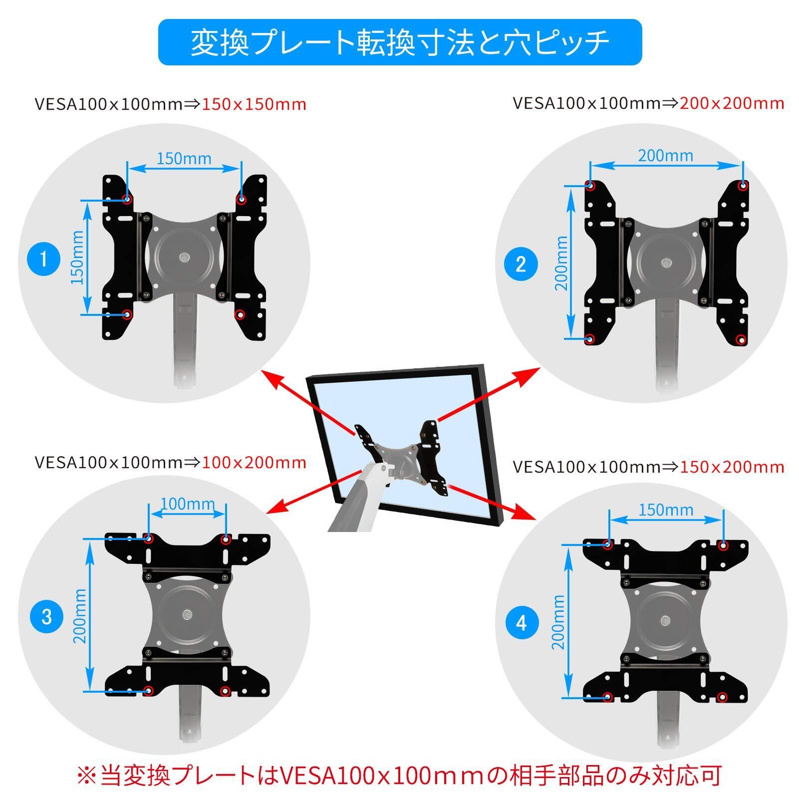 VESA変換プレート規格100X100mmから200X200mm、100X100mmから100X200mm、100X100mmから150X150mm、100X100mmから150X200mmに転換できます。モニターアーム 壁掛け金具に適します。