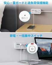 節電・安全性:スイッチは接続機器のオン/オフができ、節電することができます。スイッチのLEDランプが青いで、通電がわかりやすくて便利です。この蛸足コンセントには雷サージ保護器と過負荷保護器が搭載されており、雷と回路過負荷による電子機器への危害を効果的に防止することができる。電気火災防止のため、コンセントタップ本体には耐熱性に優れたABS樹脂を使用しています。