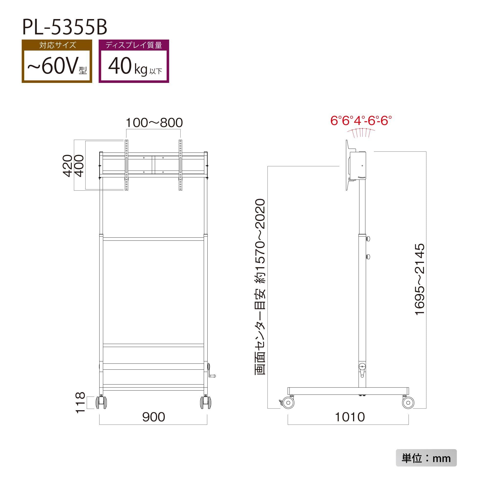 ハヤミ工産 テレビスタンド 60V型まで対応 VESA規格対応 ハイタイプ 手動昇降式 キャスター付き ブラック PL-5355B