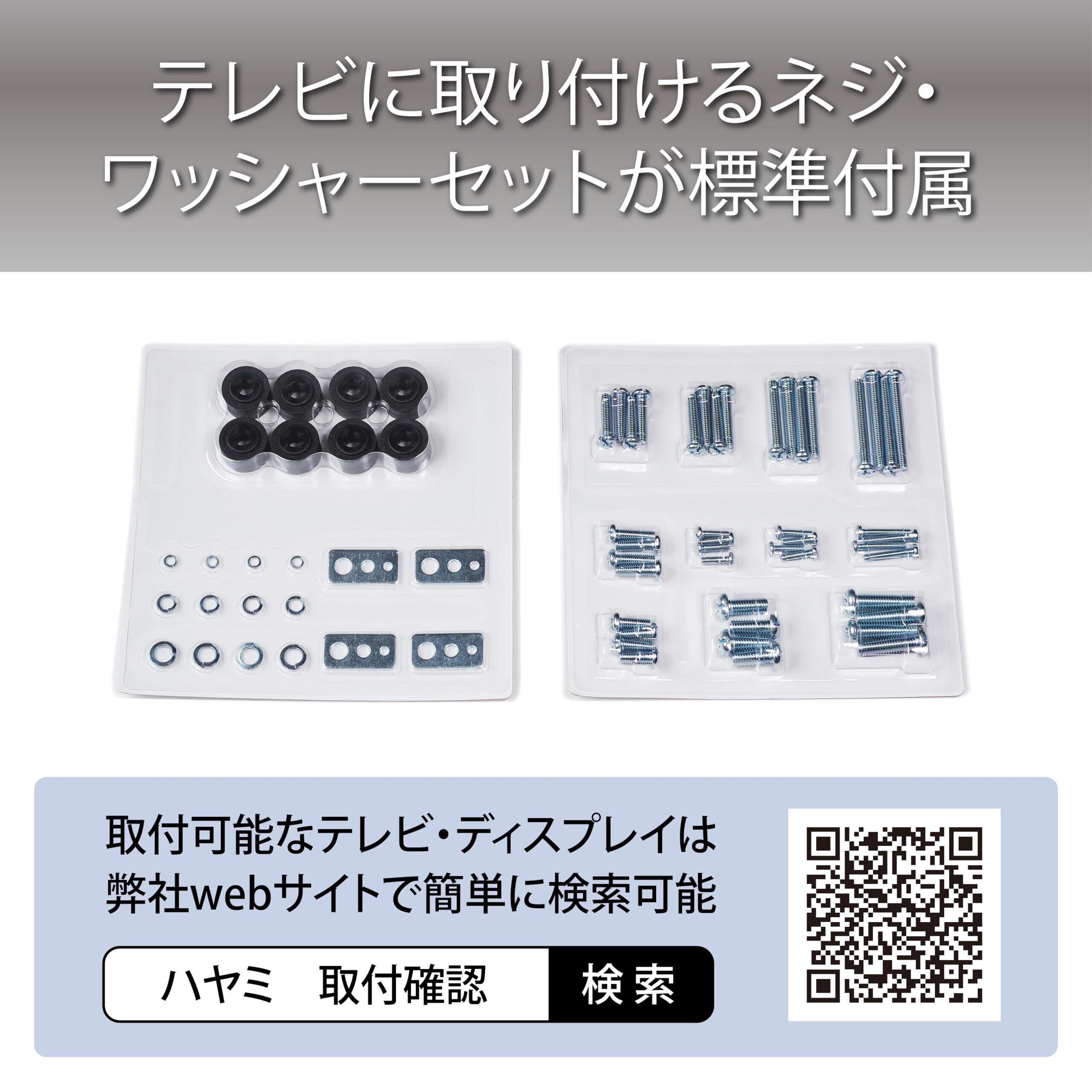 メーカーホームページ、ハヤミ工産WEBサイト内『テレビ取付対応検索』にてご確認ください。