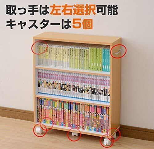 [山善] 本棚 スリム (キャスター付き 本棚) 幅57.5×奥行17×高さ68.5cm 取っ手左右付け替えOK コミック (まんが) 収納目安105冊 組立品 ナチュラルビーチ CCW-7055C(NB/WH)