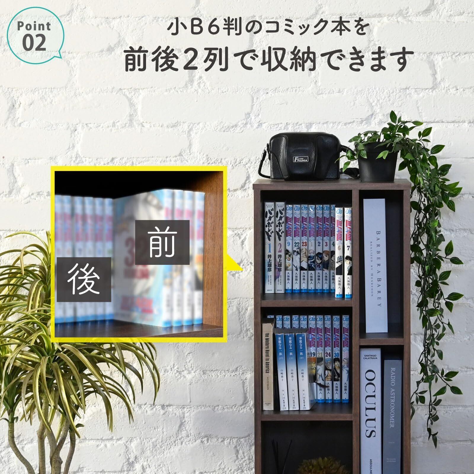 【前後で収納可能】小B6判のコミック本であれば前後2列で収納できるので、より多くの漫画を収納できます。