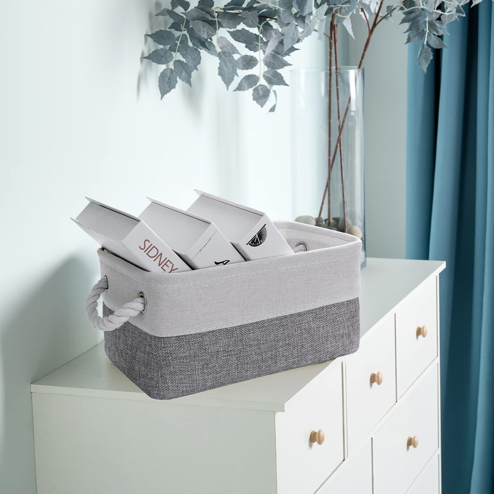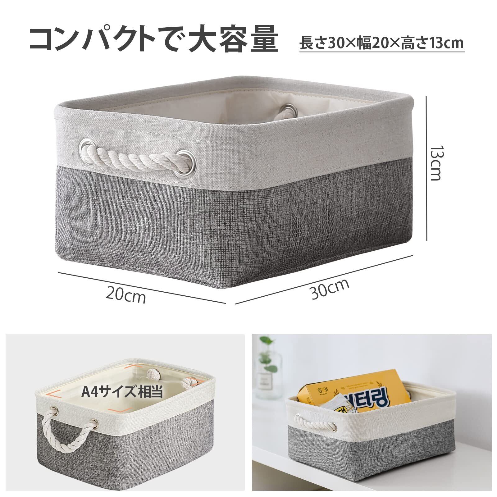 TheWarmHomeかご バスケット 収納 かご 30cm×20cm×13cm カゴ 引き出し収納 収納ボックス 綿麻製 布製 コンパクトデスク収納 玄関収納 おもちゃ収納 折り畳む式 おしゃれなインテリア雑貨 高耐久性 ハンドル付きホワイトグレー…