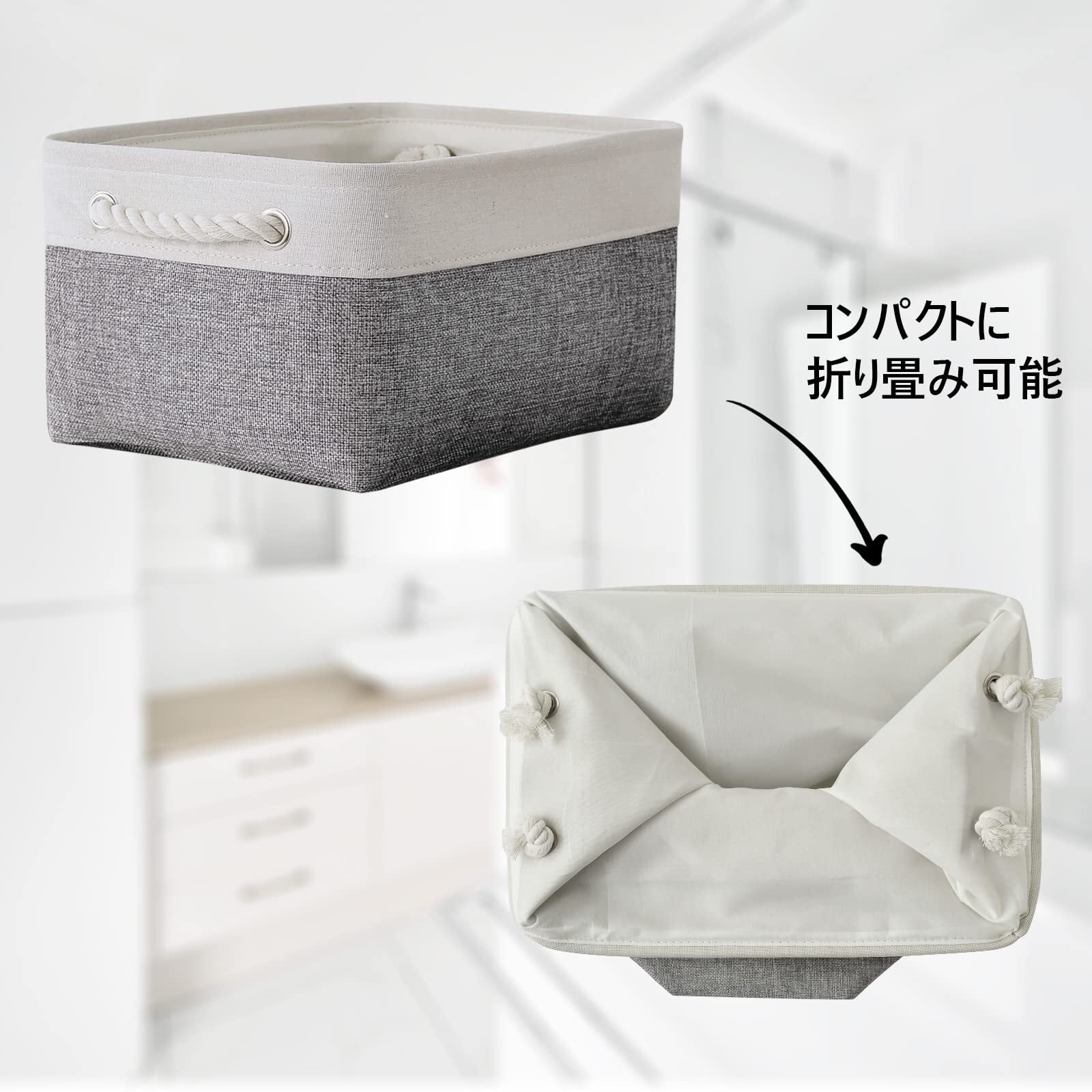 【折り畳み式】折り畳み式収納バスケットは、数秒で簡単に開けて収納できます。使いやすいです。軽量のコンパクトで、使用しない時は、簡単に折りたたんで収納できます。