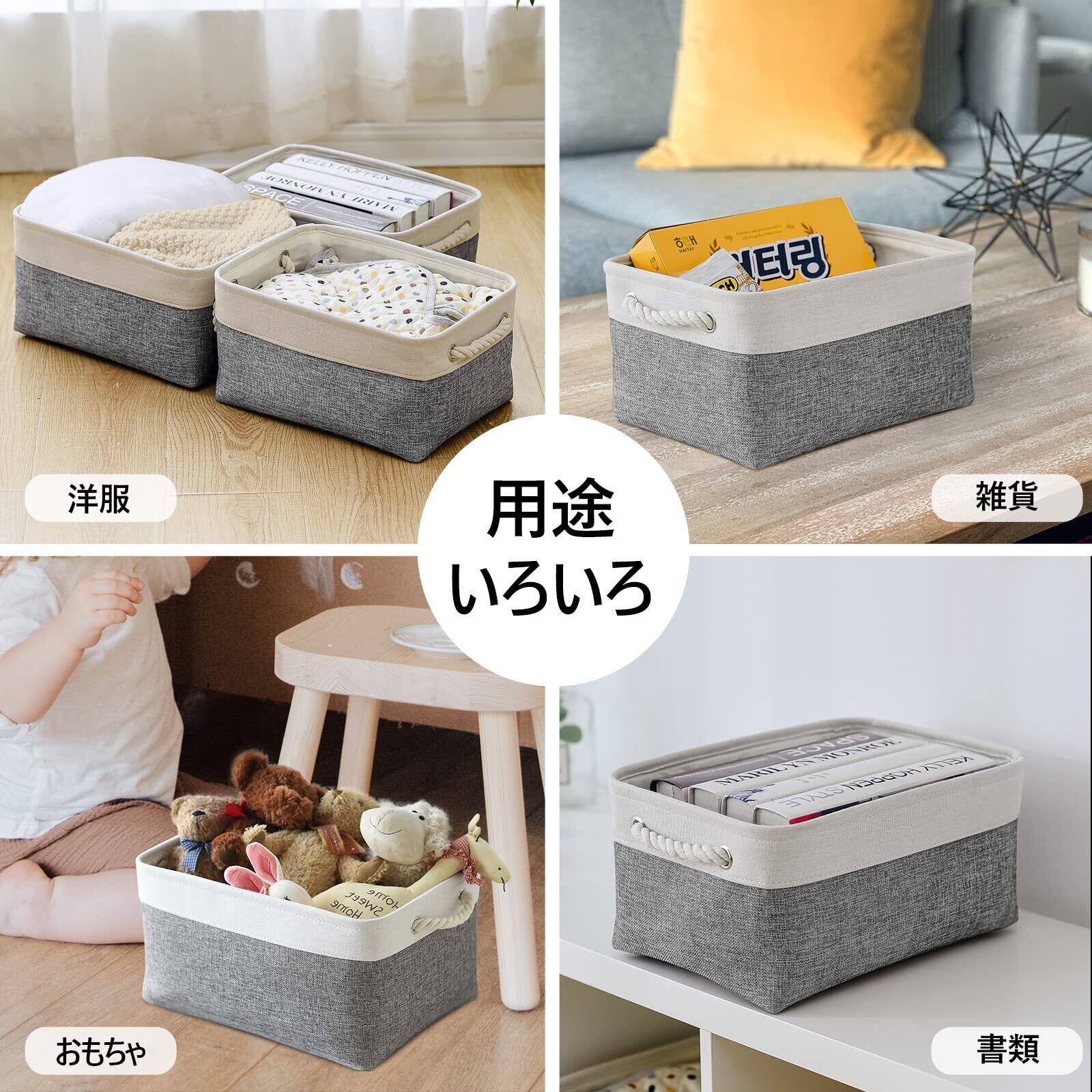 【収納かご・3個セット】大容量の3個セットの収納かごとして雑志、CD、化粧品、文房具、服、子供のおもちゃ、ぬいぐるみ、ペット用品、ベビー用品、タオル、車用品、雑など収納に適しています。収納場所は寝室、リビンルーム、お風呂、クローゼット、オフィス、自動車、ベッドの下など様々なシーンで適用して、バラバラな所をすっきりにする