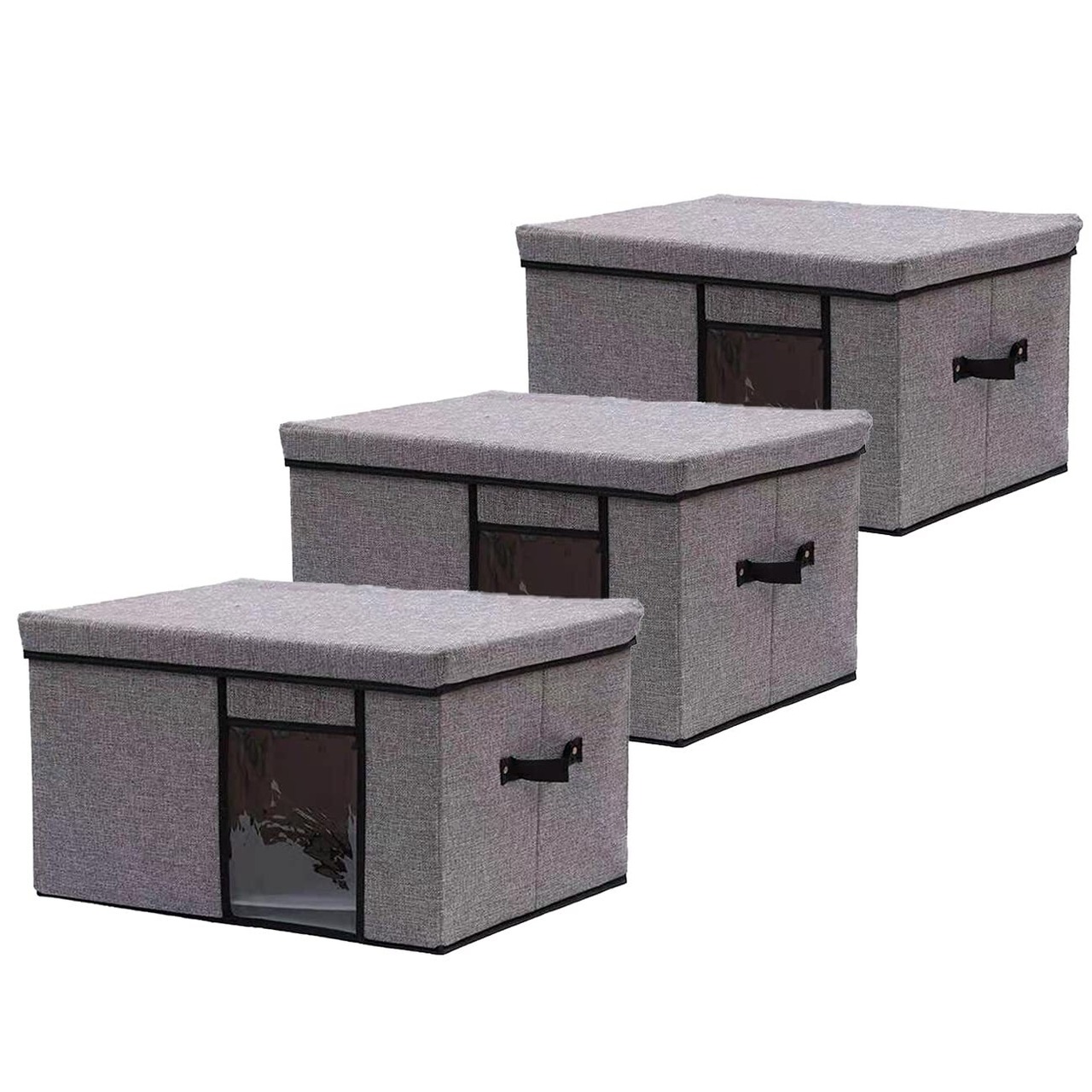 TelCormik 収納ボックス 大容量 3個セット 透明窓 折り畳み 収納ケース 取っ手付き 蓋付き 積み重ね可能 おしゃれ 洗える 無臭 大容量 高耐久性 衣類 おもちゃ 小物収納 (グレー 41X31X25cm)