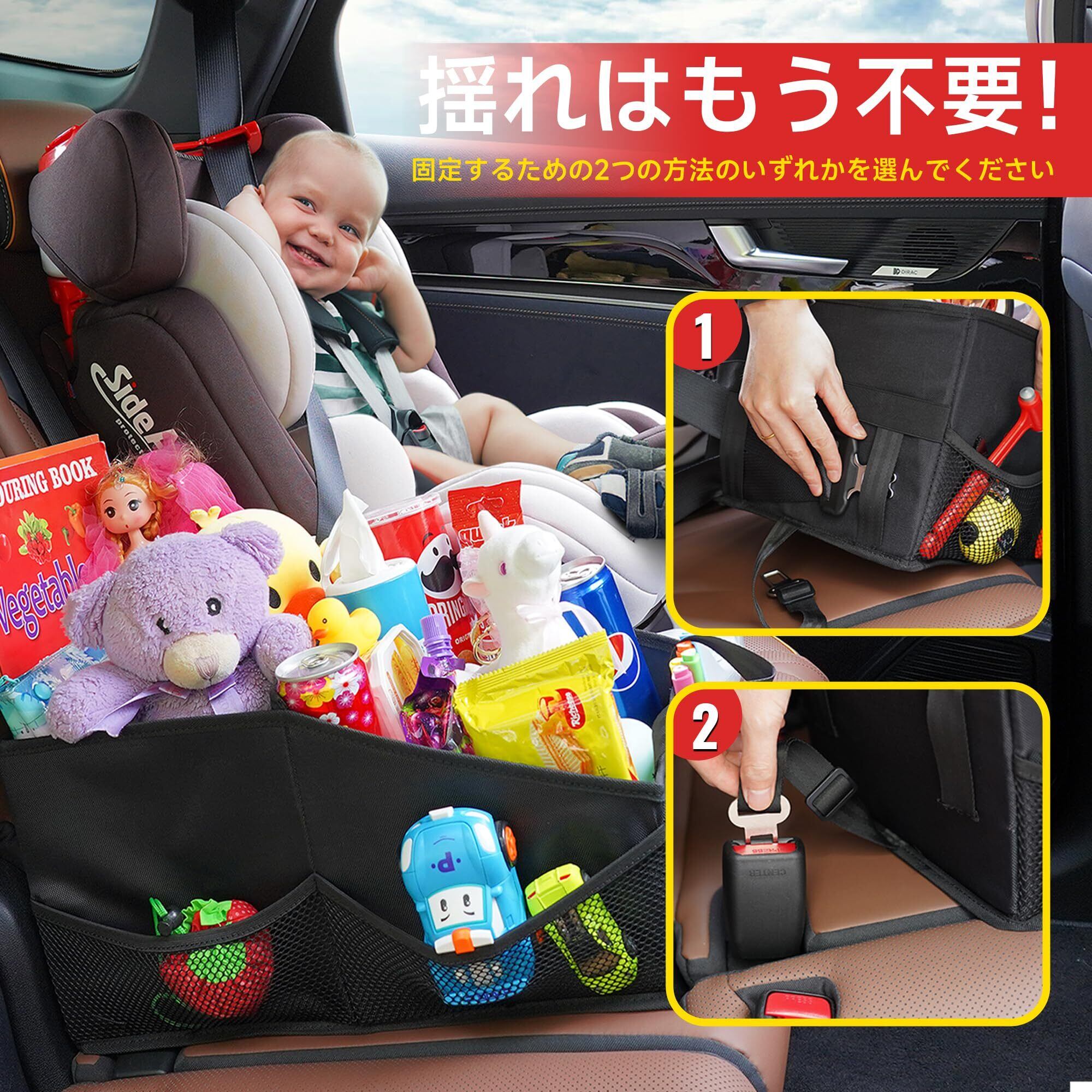 【簡単に40個のアイテムを収納】2つの大きな仕切りと5つのメッシュポケットが、お子様のおもちゃ、カップ、スナック、本、ペン、ティッシュなどを収納できます。車内を整頓し、清潔に保ちます。子供とのロードトリップには必須のカーアクセサリーです。