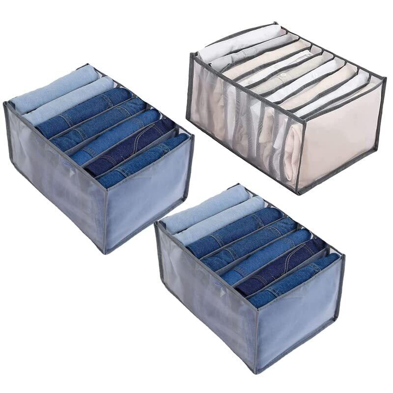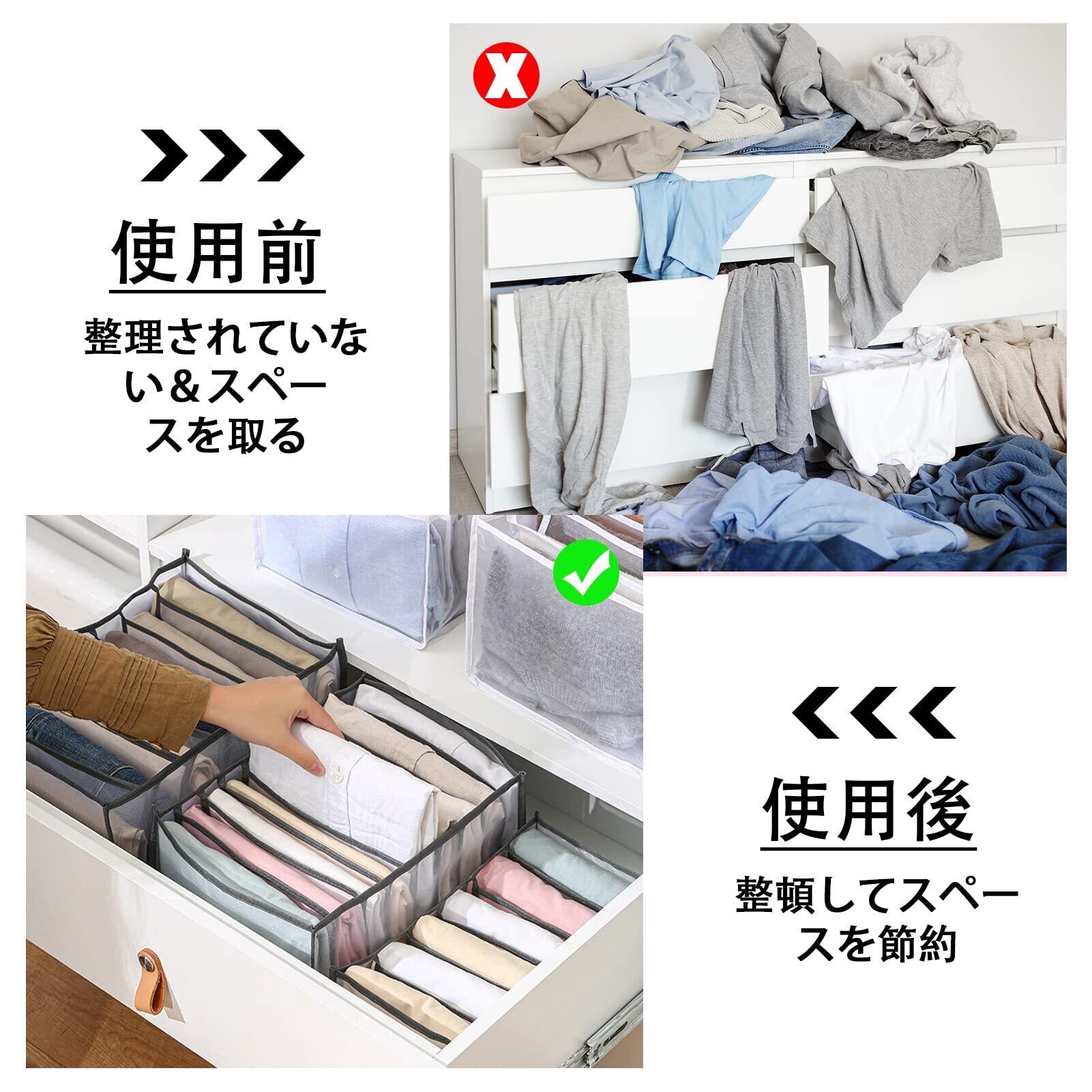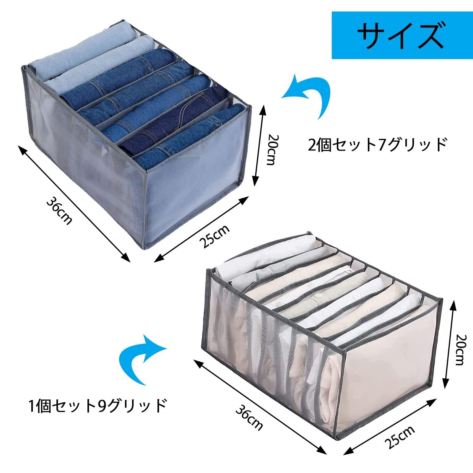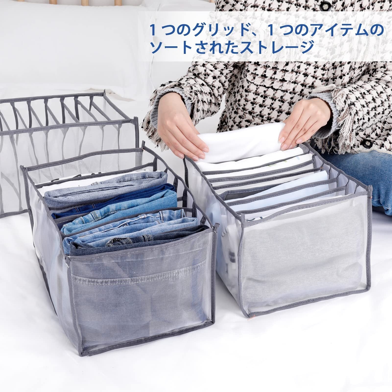 girldate ズボン収納ケース 3点セット (7仕切り*2、9仕切り*1) 仕切りボックス tシャツ収納 衣装収納ケース 引き出し仕切り メッシュ 透明グリッド 折り畳み 洗濯可能 大容量 通気性 無臭 防塵 スペース節約 多機能