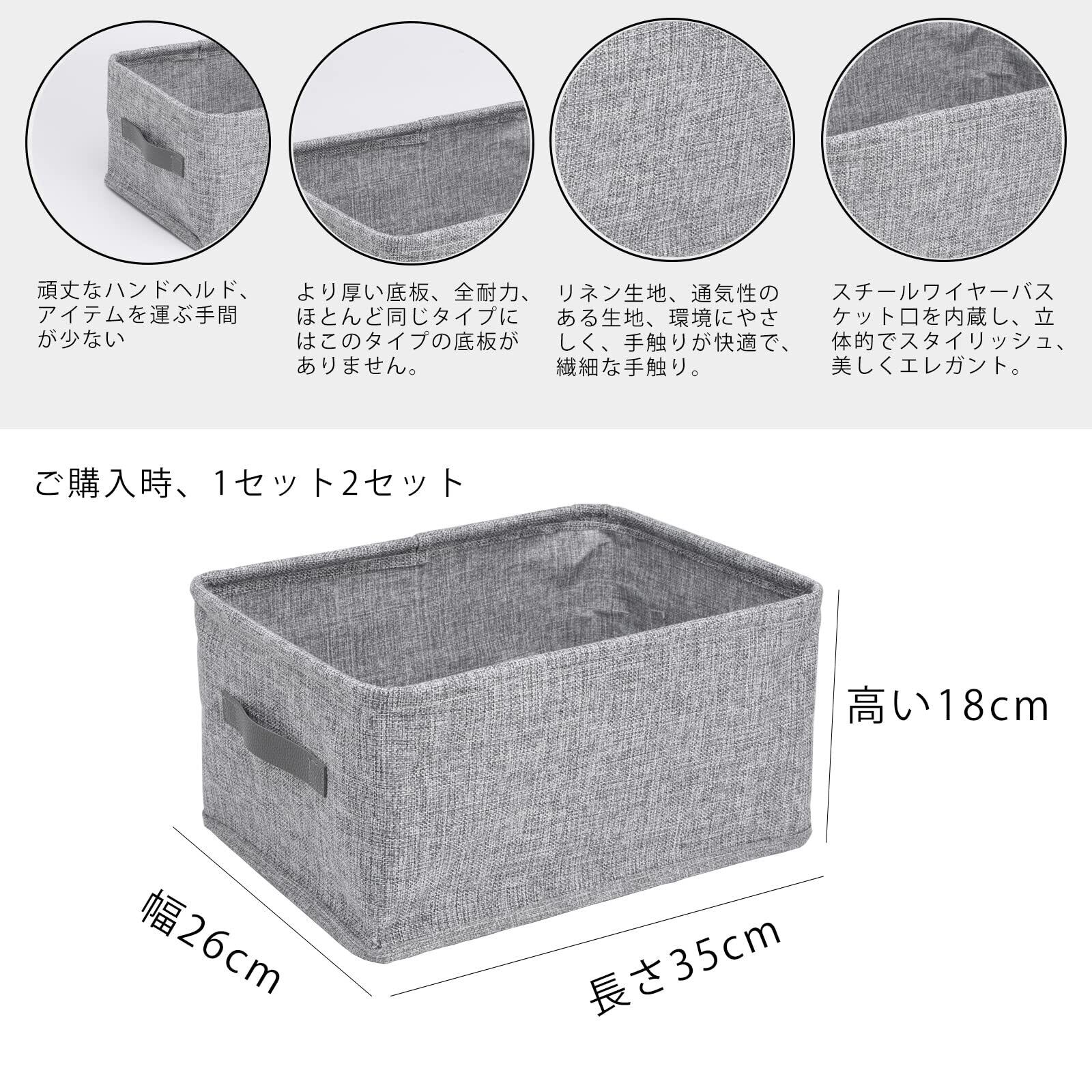 【シナリオマッチング】収納ボックスは、寝室、居間、書斎、収納室、オフィスなど、さまざまなシーンで使用されています。 サイズは2種類あり、収納ボックスのサイズと数量は以下のように選択します。 製品の色は新鮮で、さまざまな装飾スタイルに合わせることができます。 素材は環境