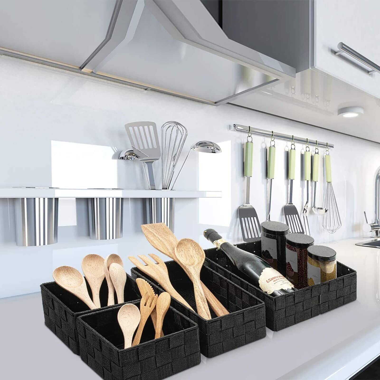 ZGNWRHVA 編み収納ボックス 収納ボックス 4個セット 三つのサイズ 手編み 小物入れ 卓上収納 デスク 収納 小物収納 バスケット 収納ボックス 水洗い 生活雑貨 引き出し おしゃれ 防水 防湿 高耐久性 (ブラック)
