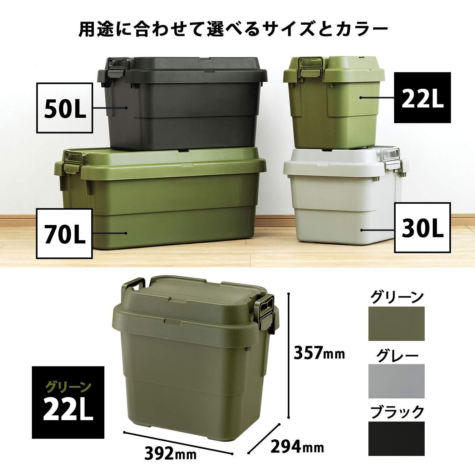 リス(RISU) 収納ボックス トランクカーゴ 22L グリーン 日本製 TC-20S コンテナ ボックス スタッキング 屋外収納 キャンプ 防水