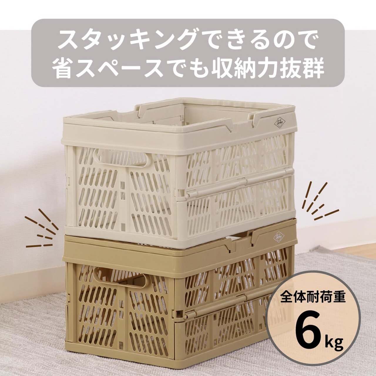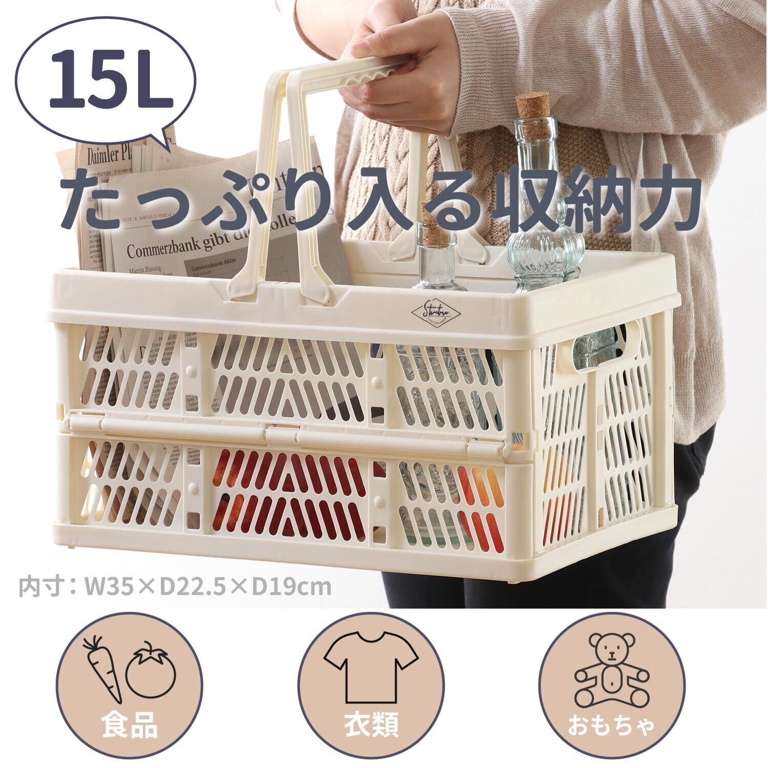 不二貿易(Fujiboeki) 折りたたみ コンテナ かご 幅38×奥行25.5×高さ20㎝ ホワイト 取っ手付き 持ち運び簡単 内容量15L Mサイズ 86444