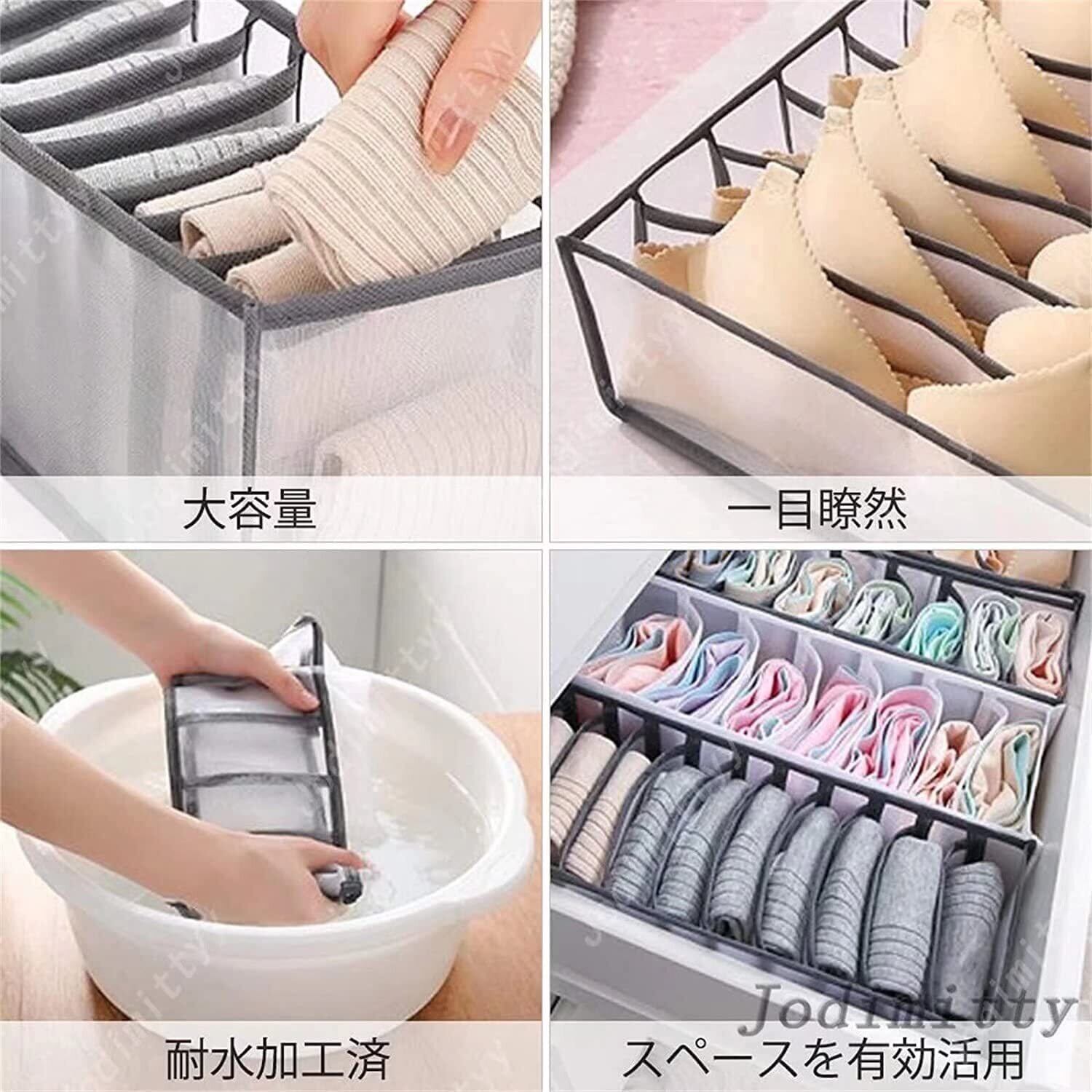 Jodimitty 下着収納ボックス 下着収納ケース 折り畳み 引き出し仕切り ブラ 下着 靴下 小物収納 防虫 防塵 防湿 通気 収納简单 (ホワイト, (6マス+7マス+11マス)3点セット)