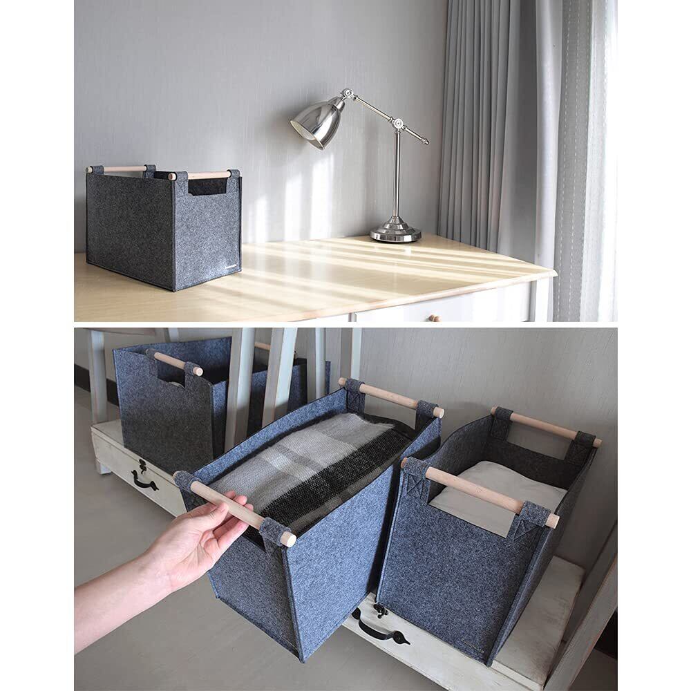 【強度・耐久性抜群】3MMの厚手フェルトボックス。丈夫な素材で形が崩れません。耐圧縮性と耐摩耗性が高く、シワになりにくいです。ログハンドルには丈夫なブナ素材を使用しており、持ち運ぶ時の安定性抜群です。 軽量で運びやすく、耐久性にも優れているため、様々な用途に合わせて使うことができます。使わない時は折りたたんで、場所を取らずに収納できます。