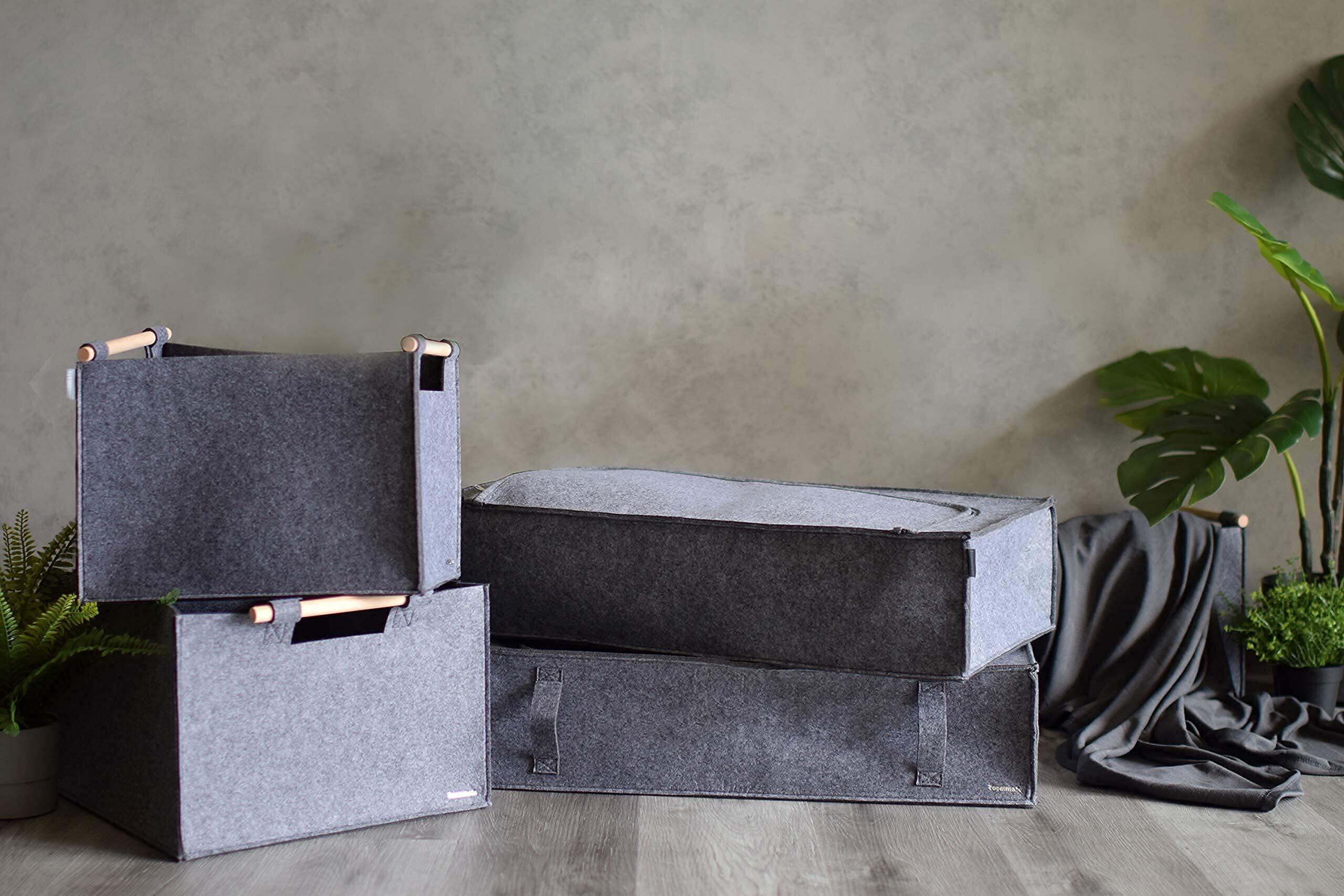 Roommate 収納ボックス フェルト生地 折りたたみ式 北欧スタイル 衣類 書類 オーガナイザー 取っ手付き洗濯かご 部屋クローゼット収納 大容量 グレー 灰色- 24*36*20cm S