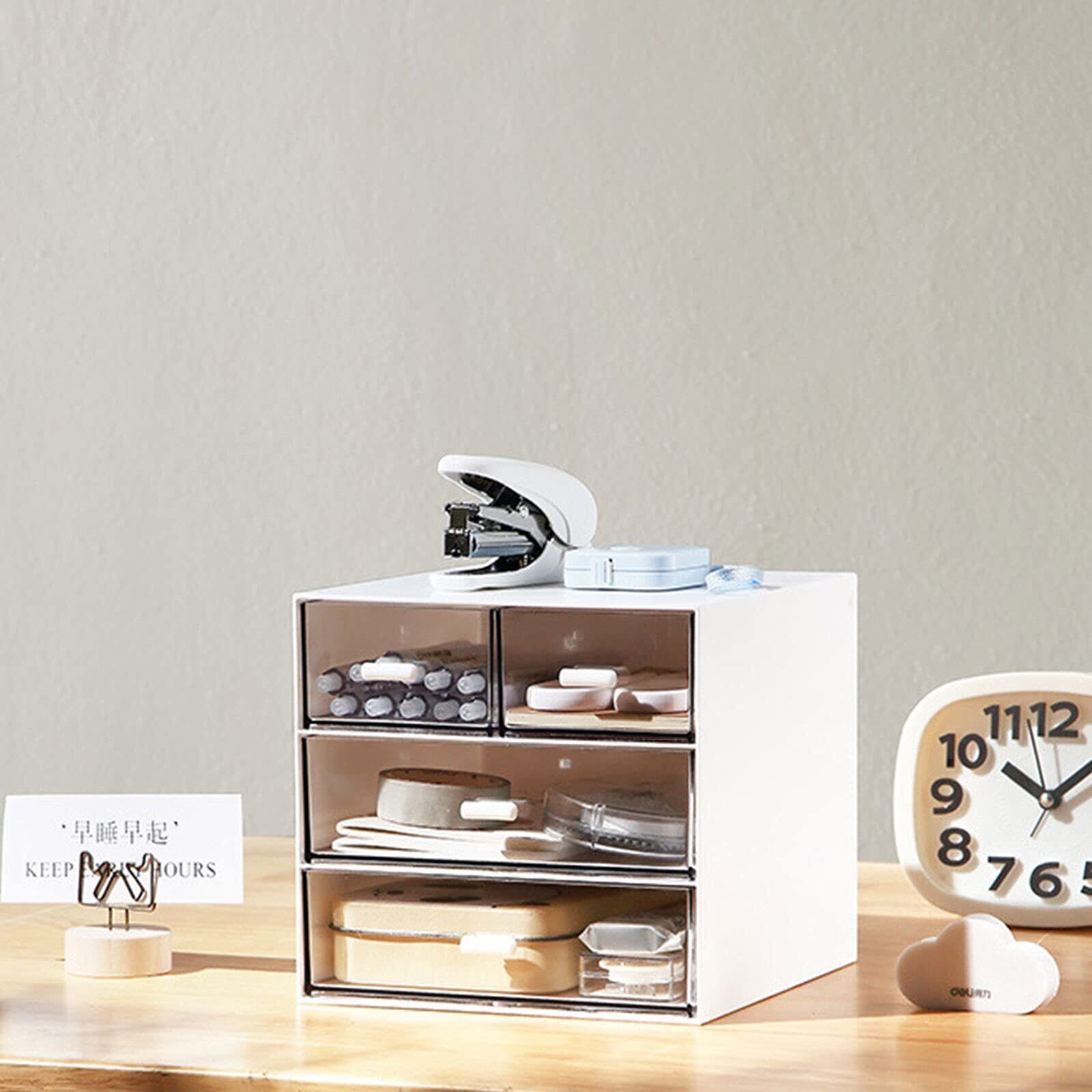 QMO 卓上 収納ケース 卓上収納 整理 小物入れ 小物ケース 化粧品収納ボックス ジュエリーボックス 収納ボックス 引き出し (4引出し15.3*16.6*14.5)