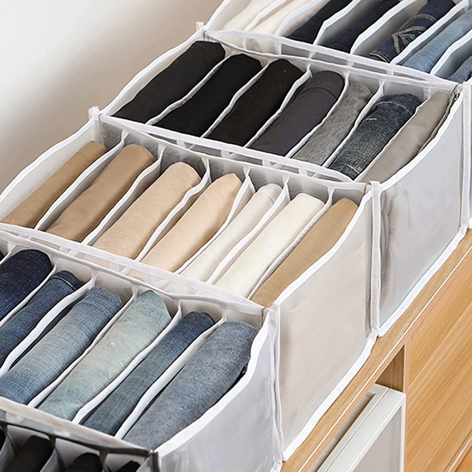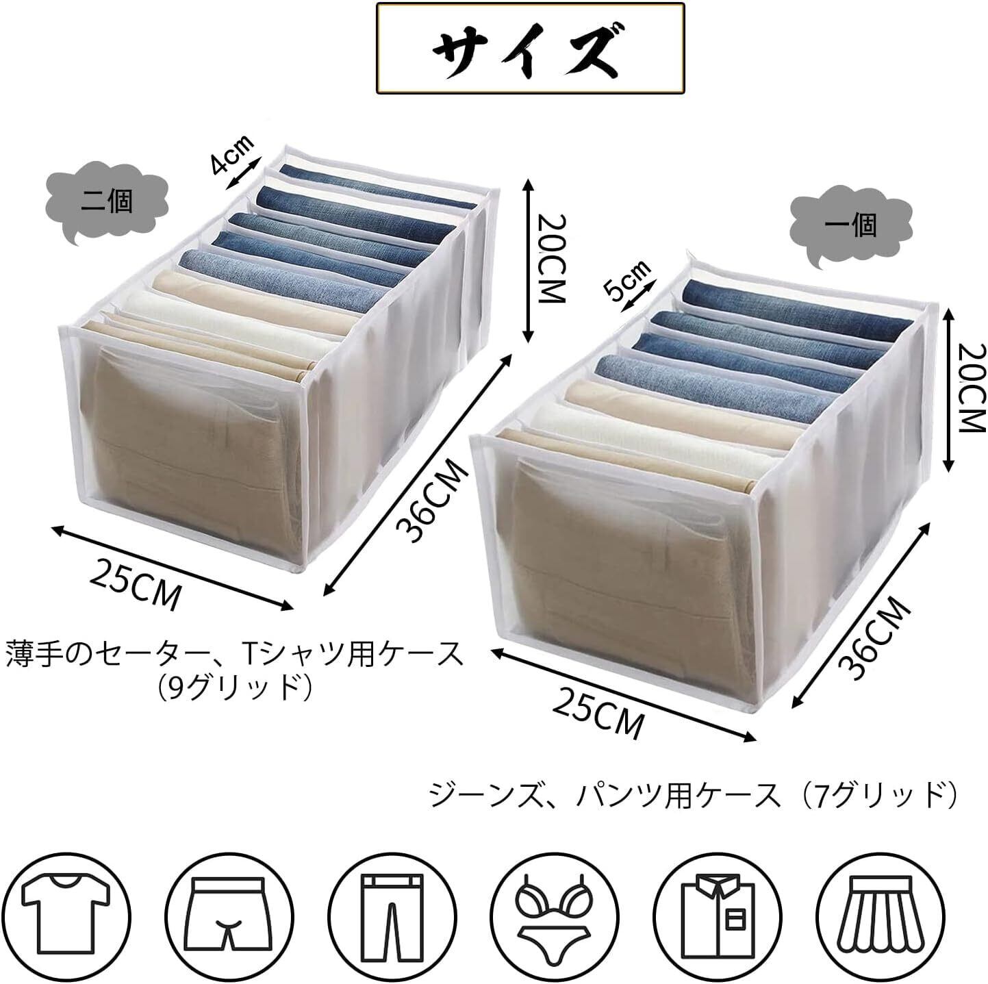 【注文内容】1セットは3個収納ケースがあり、ジーンズ、パンツ用ケース(7グリッド)×1、7マスのサイズ:D36cm×W25cm×H20cm、各グリッド間隔は5cmです。薄手のセーター、Tシャツ用ケース(9グリッド)×2、9マスのサイズ:D36cm×W25cm×H20cm、各グリッド間隔は4cmです。合計25マスです。(注:この製品パッケージには、ユーザーマニュアルや製品情報は含まれていません。 具体的な製品情報については、ウェブページを参照してください。)