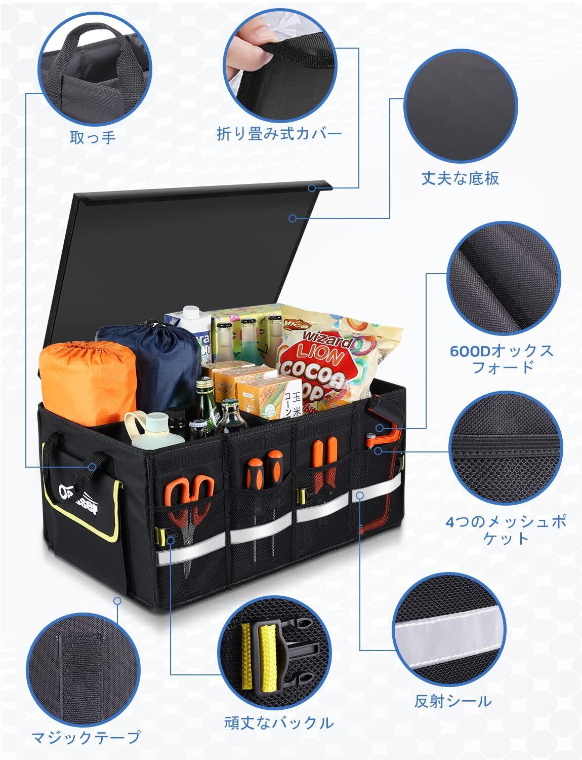 多用途:車用収納ボックスは55Lの収納容量を持ち、タオル、工具、その他の様々な車用品を簡単に収納し、トランクを整理整頓した状態にする。トランクの整理整頓だけでなく、家庭用やキャンプ時の収納なども利用可能。