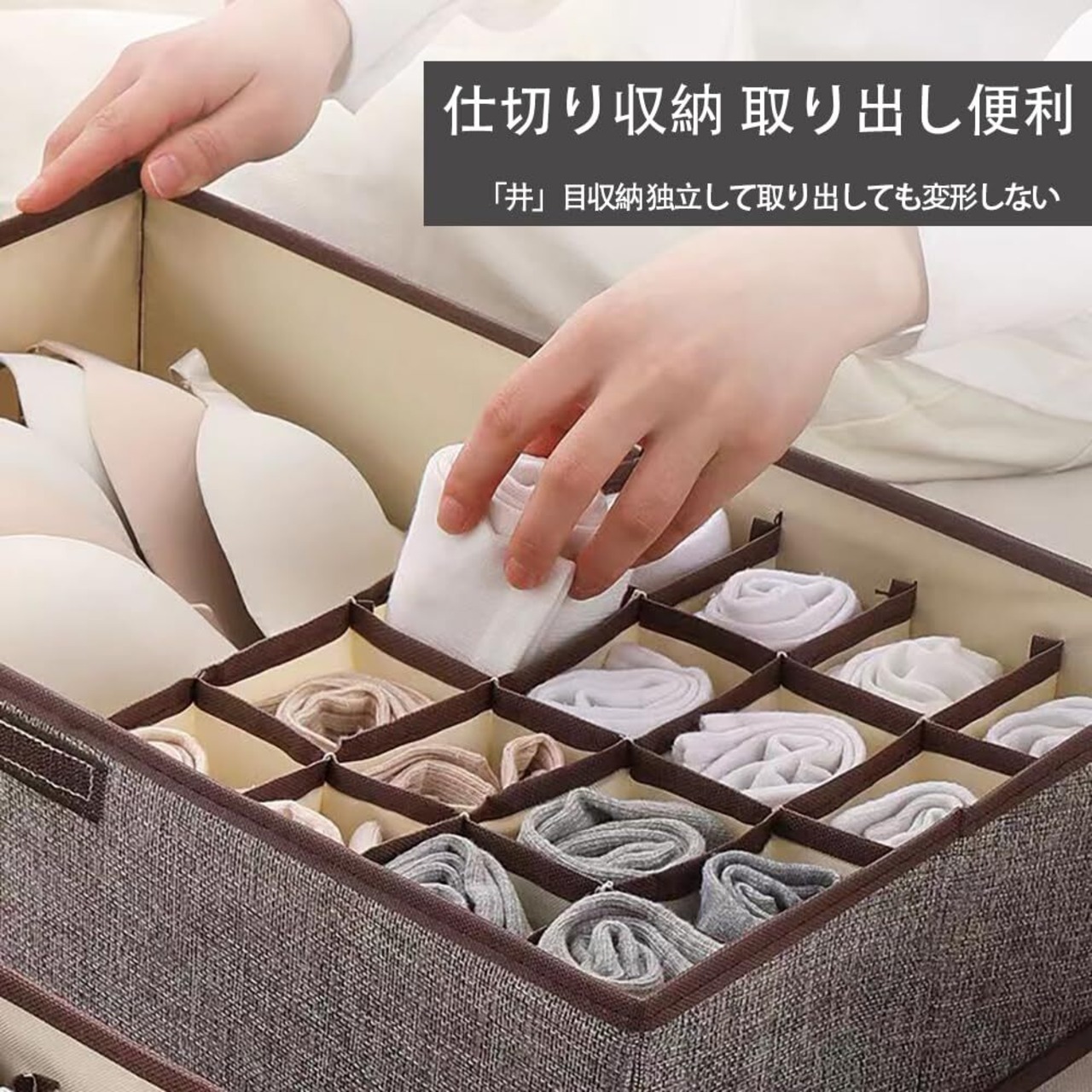 大容量:収納ボックスは17個のグリッドで設計されています、柔らかい仕切りなので小衣類が入れやすく(下着、靴下、ネクタイやブラジャーを)
