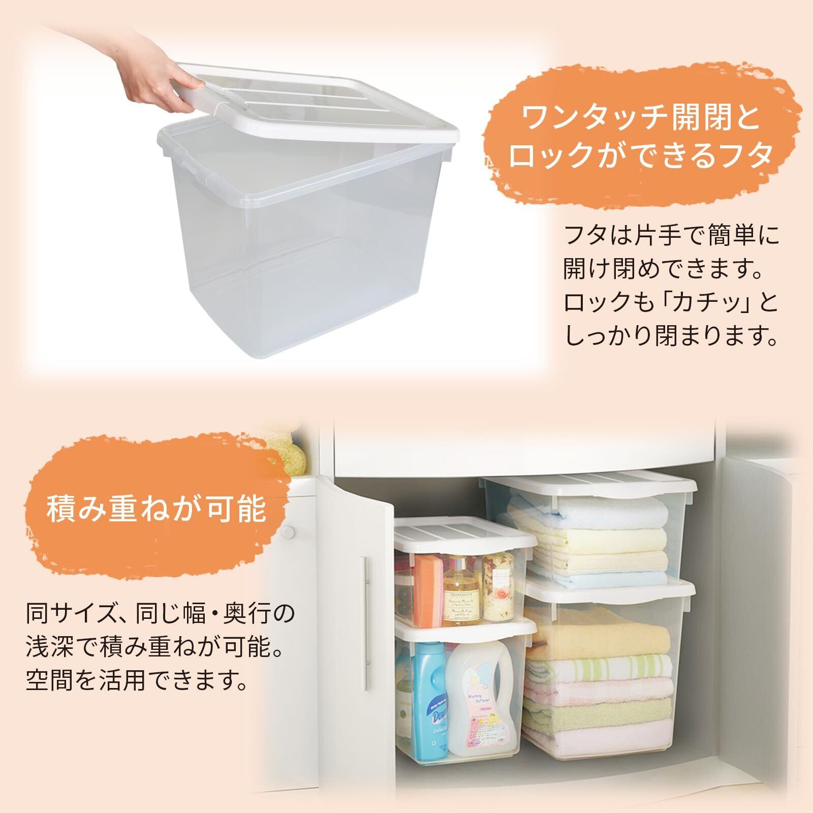 ●ワンタッチ開閉できるロックが付いた、浅深サイズがそろったフタ式収納です。