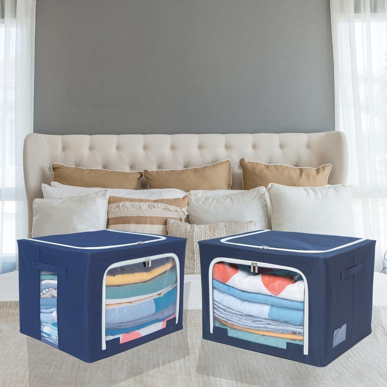 Tasmegol 衣類収納ケース 衣装洋服ケース 収納ボックス 2個セット 収納ケース ふとん収納 72L大容量 オックスフォード布製 折り畳み式 積み重ね可能 透明窓 キャリーハンドル クローゼット 整理整頓…
