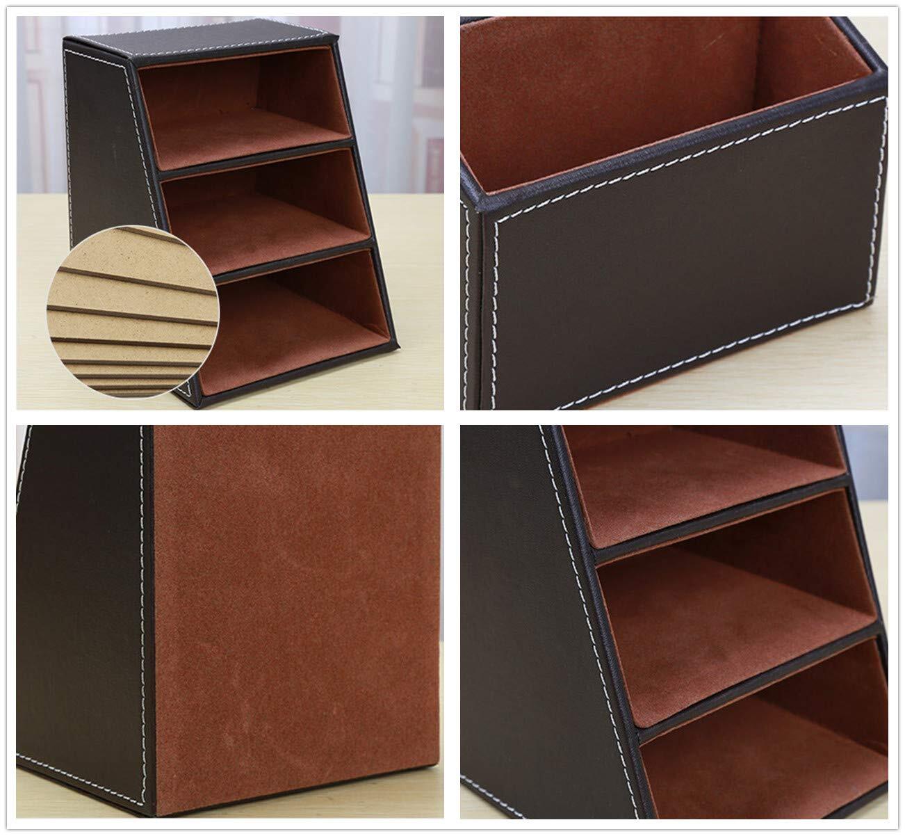 Ansimple 収納ボックス 収納ケース 卓上収納ラック 文具収納 リモコン収納 スマホ 小物入れ 整理ボックス PUレザー オフィス用品 リビング用品 インテリア 雑貨 3格仕切り (ブラウン)
