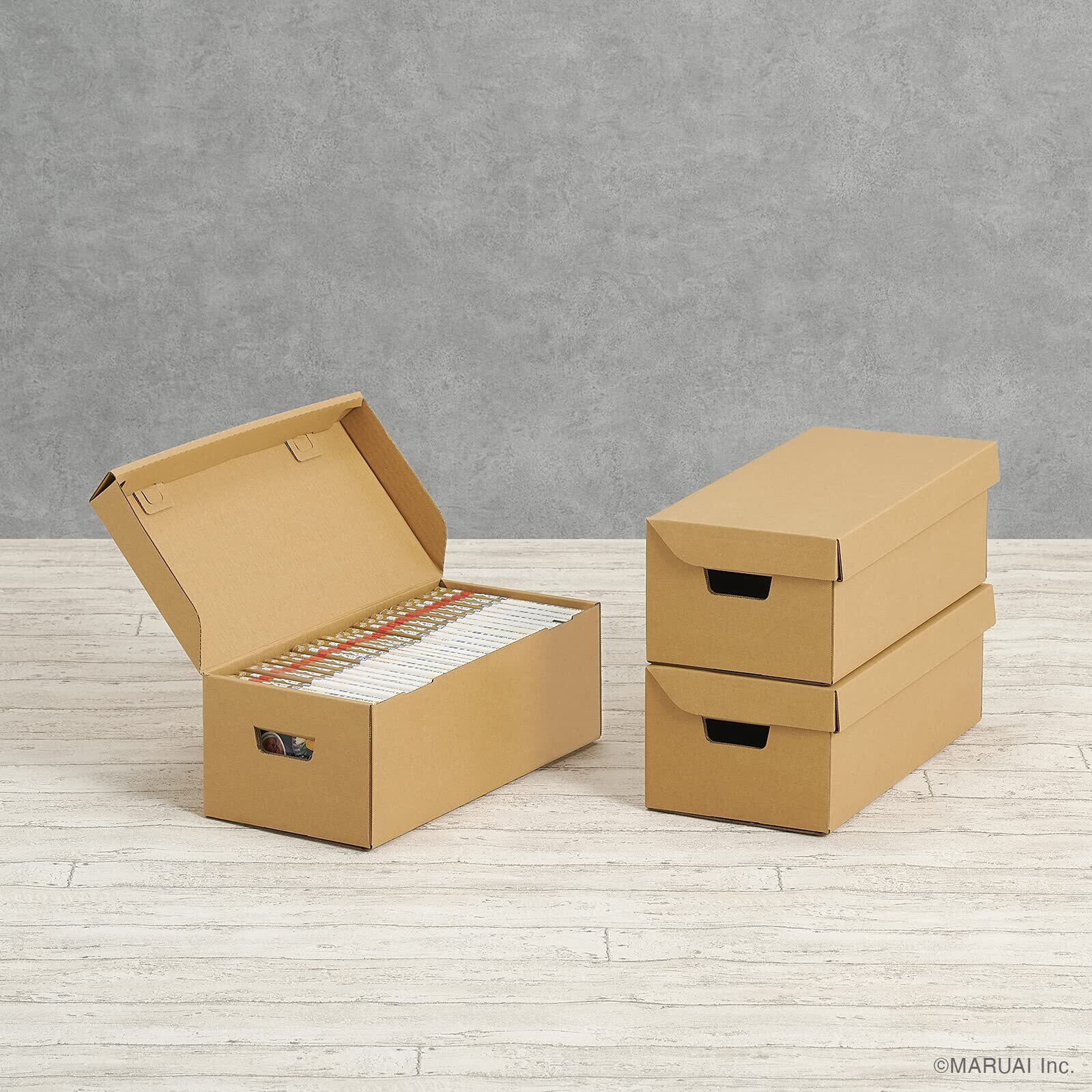 【特許登録商品 段ボール製収納ボックス。】底面2重構造、側面3重構造なので耐荷重100kg、最大6段まで積み重ねることができます。本体とフタが一体式で使いやすい構造になっています。また使わないときは小さく畳んで収納できます。収納用途:コミック約24冊分/写真L判/写真2L判 商品名:マルアイ 収納ボックス タフボックス コミック用 約24冊分収納 CA-CM