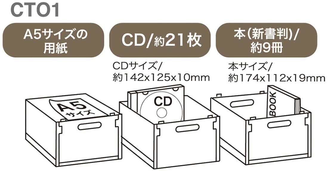 同シリーズの商品Mサイズの上にSサイズ2個並べて積み重ね可能