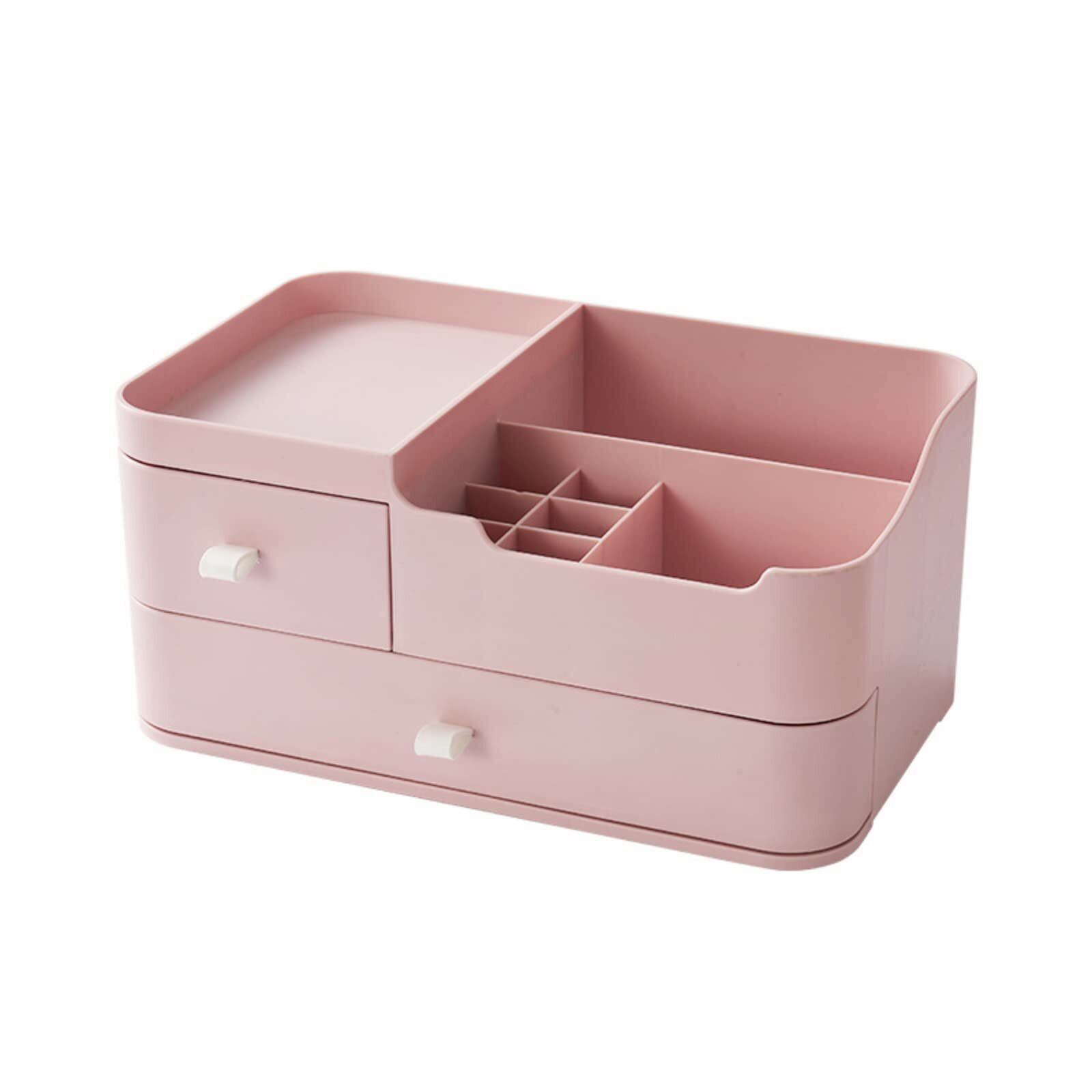 化粧品収納ボックス コスメボックス 卓上収納 大容量 コスメ収納 メイク収納 おしゃれ レディース 安定 収納ケース 引き出し 二つ(28x18x15)(ピンク)