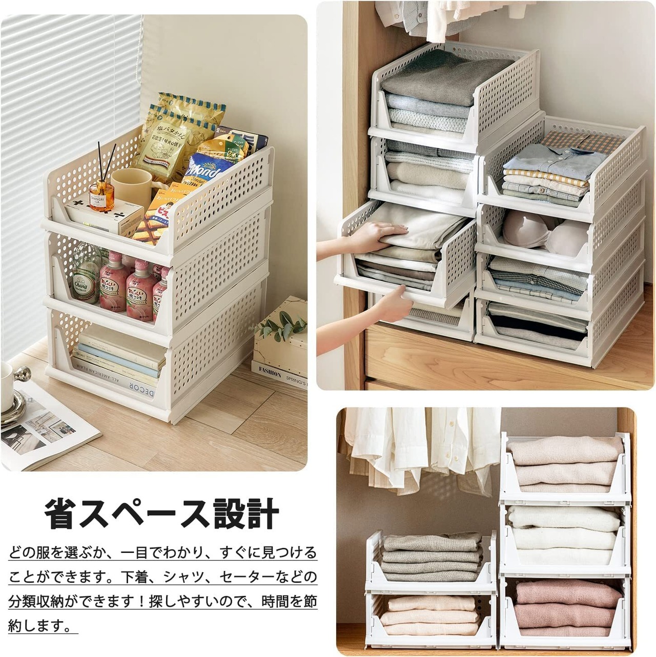 ✅【おしゃれなデザイン】通気穴があって湿気を簡単に放出させるデザイン、クローゼットの中/キッチン/洗面所/浴室の隙間収納にも適用できます,洋服、玩具、バッグ、などの整理整頓にぴったりです。クローゼット収納だけでなく、キッチンやお風呂等のところにも適用する。