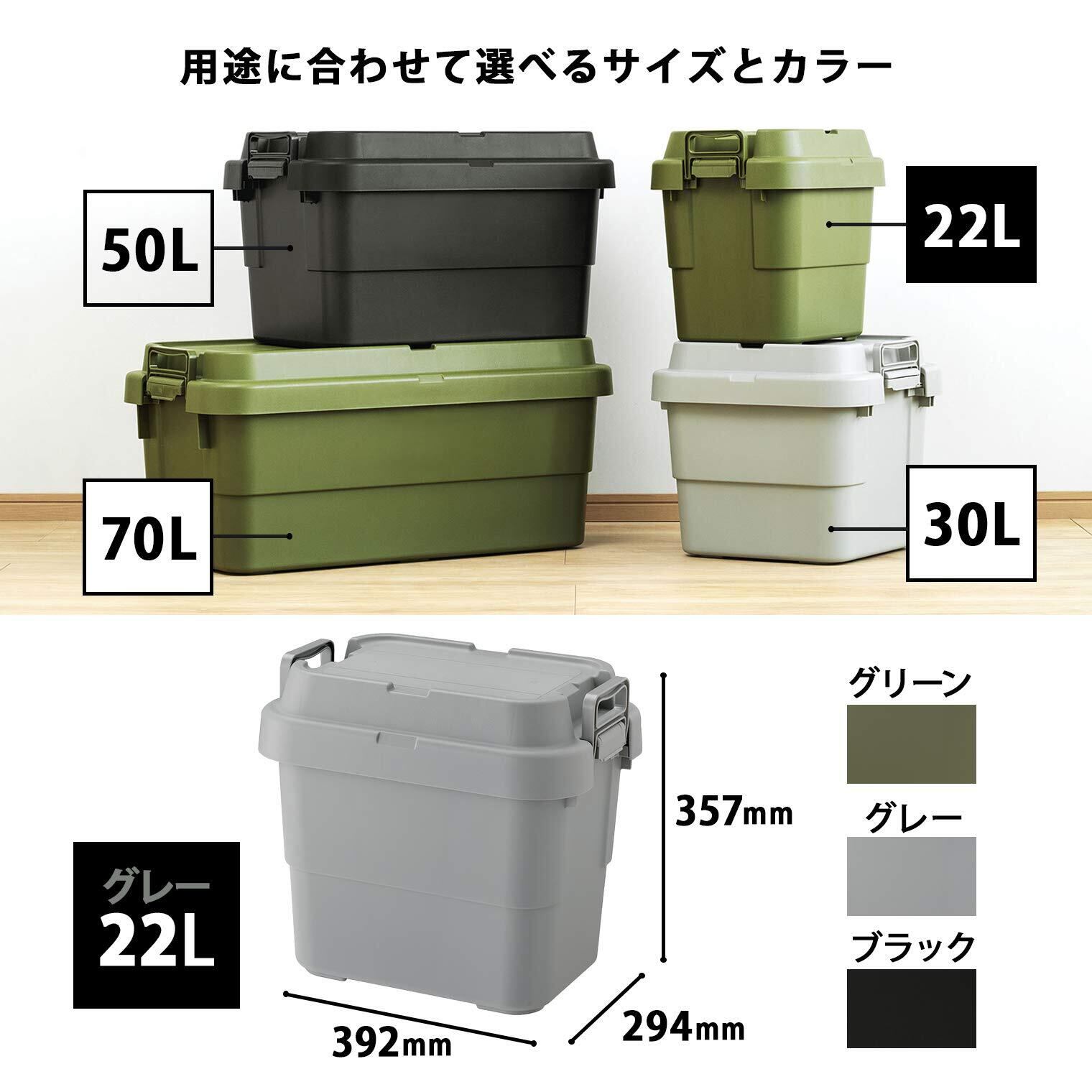 リス(RISU) 収納ボックス トランクカーゴ 22L グレー 日本製 TC-20S コンテナ ボックス スタッキング 屋外収納 キャンプ 防水