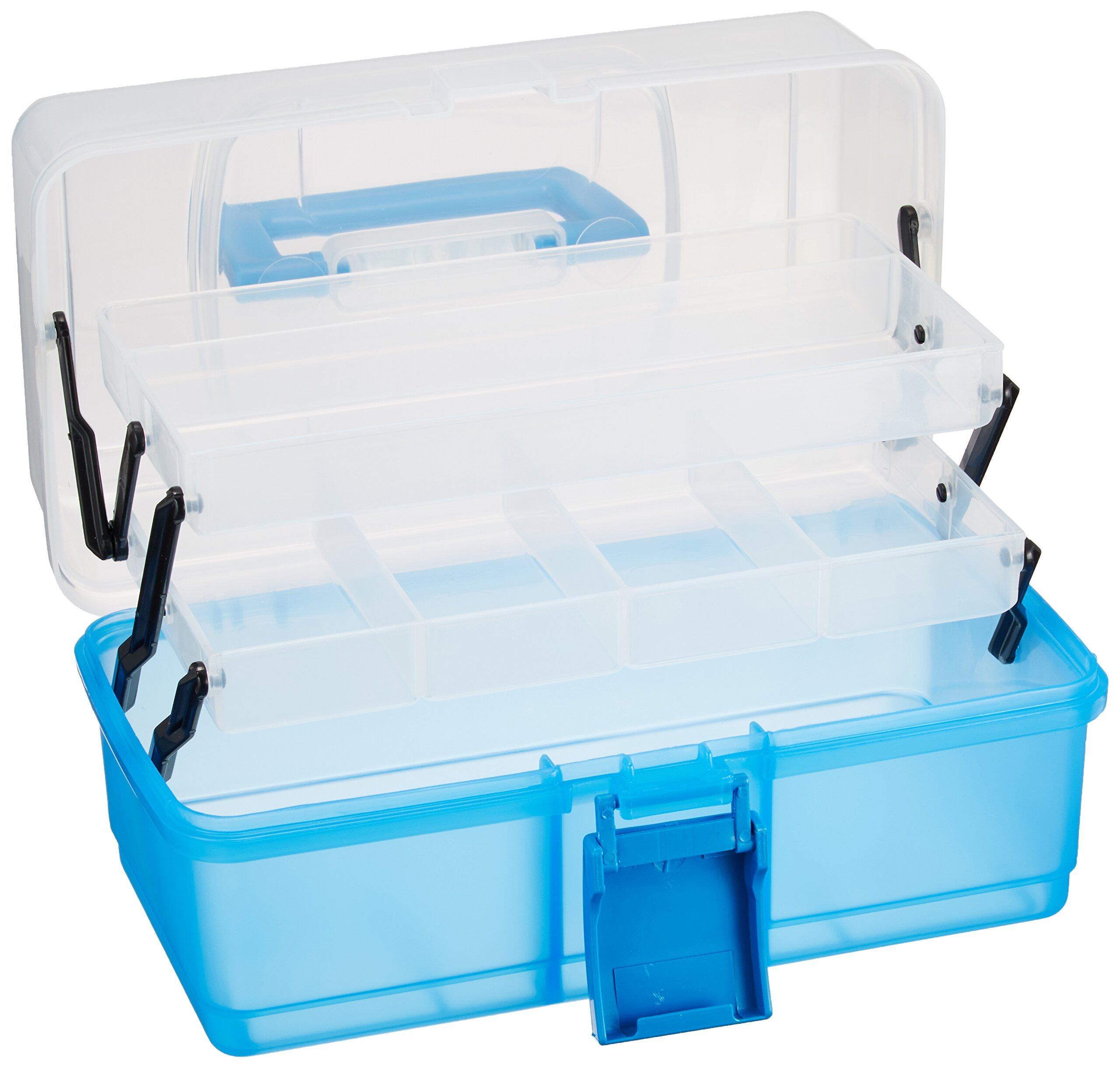 フタだけでなく本体もクリアにした小型工具ケースで、裁縫道具等、家庭内で小物を収納するのに最適です。フタの開閉に連動する2段式トレーが付いています。