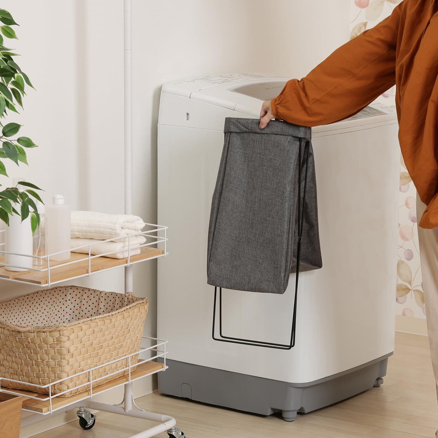内側の生地は撥水加工をしているため、洗濯機から出した洗濯物を入れることができます。
