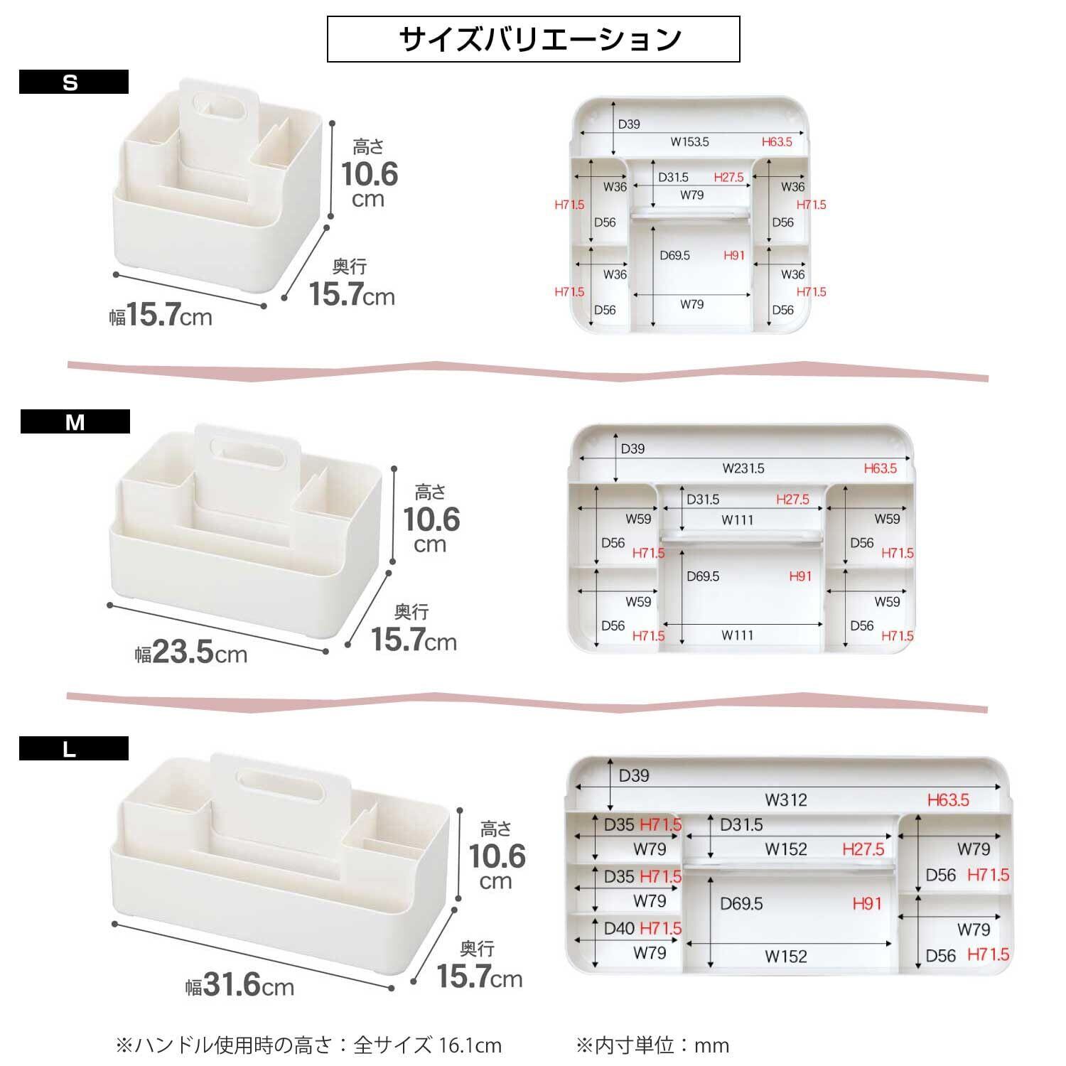 サンカ ツールピット 卓上収納 Mサイズ ホワイト (幅23.5x奥行15.7x高さ10.6cm) スライド式ハンドル付き 積み重ね可能 メイクボックス リモコンラック コスメ化粧品収納 収納ボックス おしゃれ 卓上 日本製 収納ケース squ+ NTP-MWH
