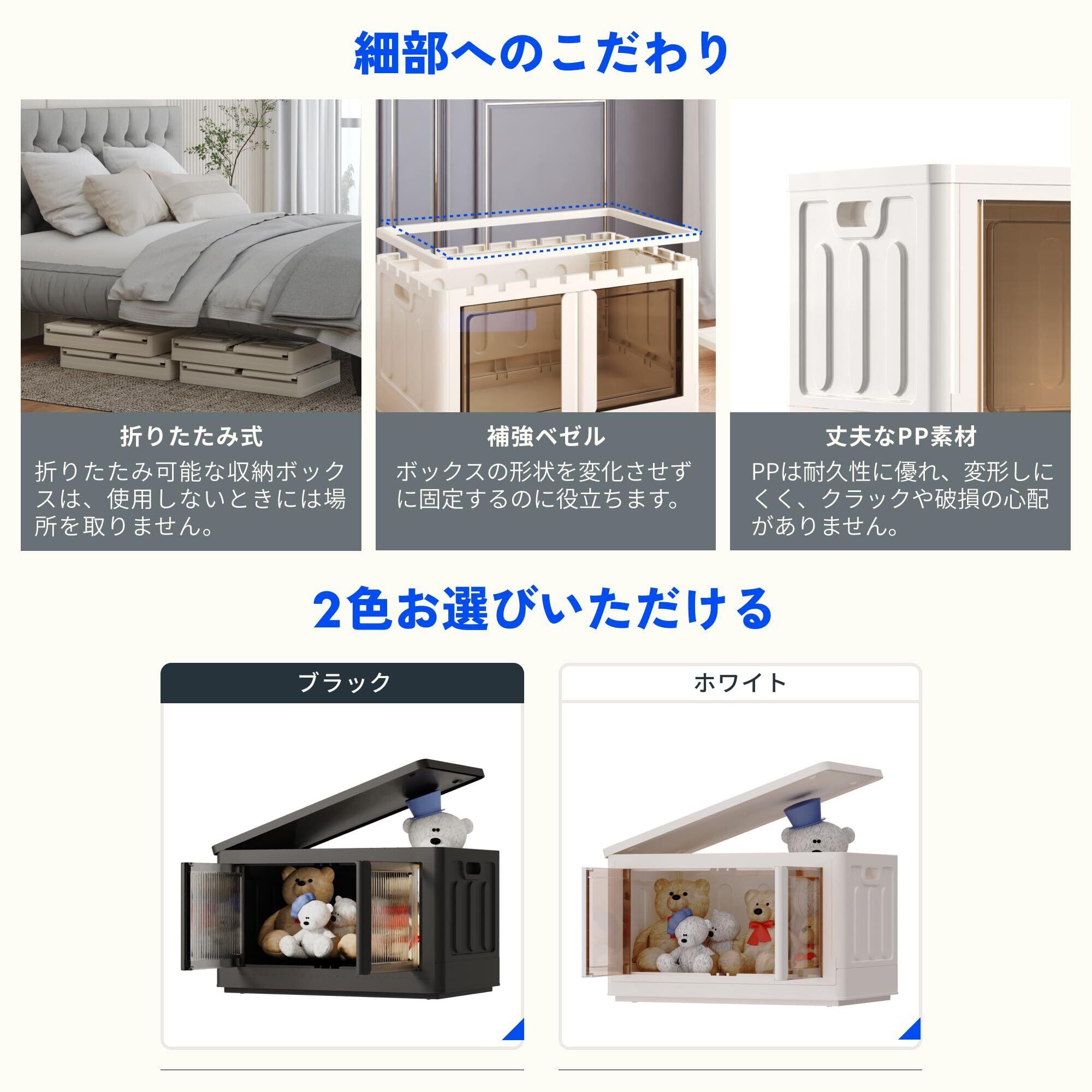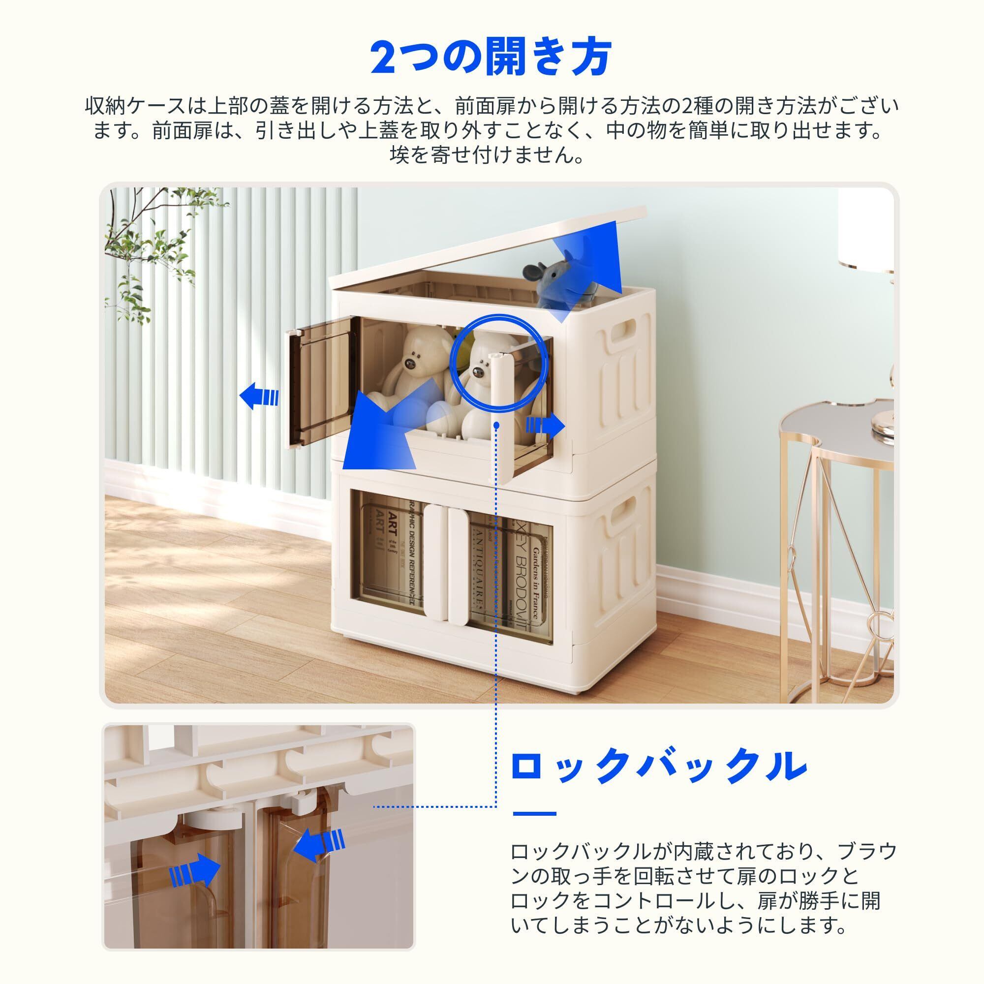 【キャスター&持ち手付き・2つの開き方】底面には4つのキャスター付きで、どの方向にもスムーズに移動できます!両側にハンドルも付いており、実用的で持ち運びやすいです。収納ケースは上部の蓋を開ける方法と、前面扉から開ける方法の2種の開き方法がございます。