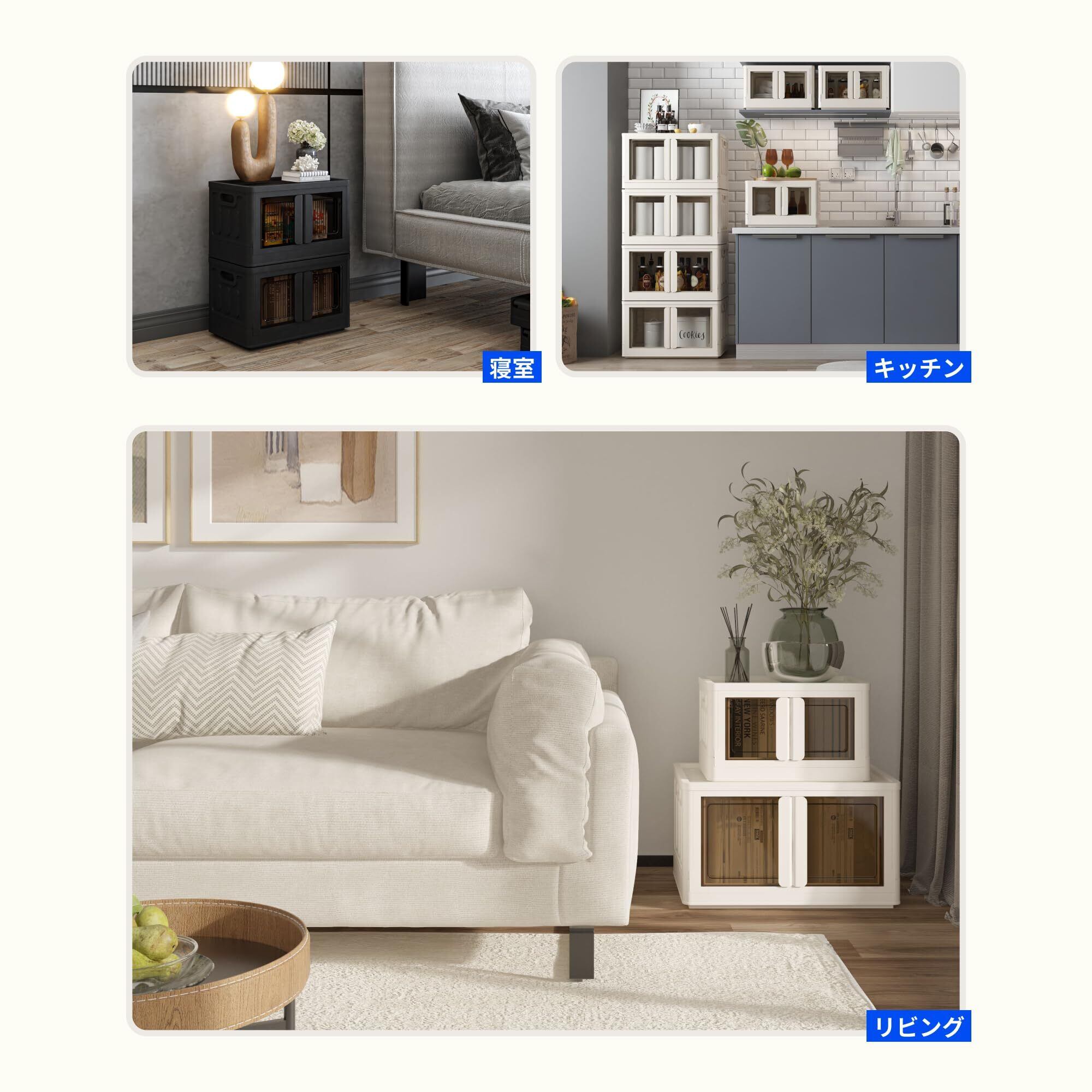 【おしゃれなデザイン】前面の扉は半透明で、中身は確認できますが、細かいところがよく見えないので、私密性が確保されます。シンプルなデザインはあらゆるインテリアのスタイルに適しています。また丸い角の設計でお子様のいるご家庭でも安全です。
