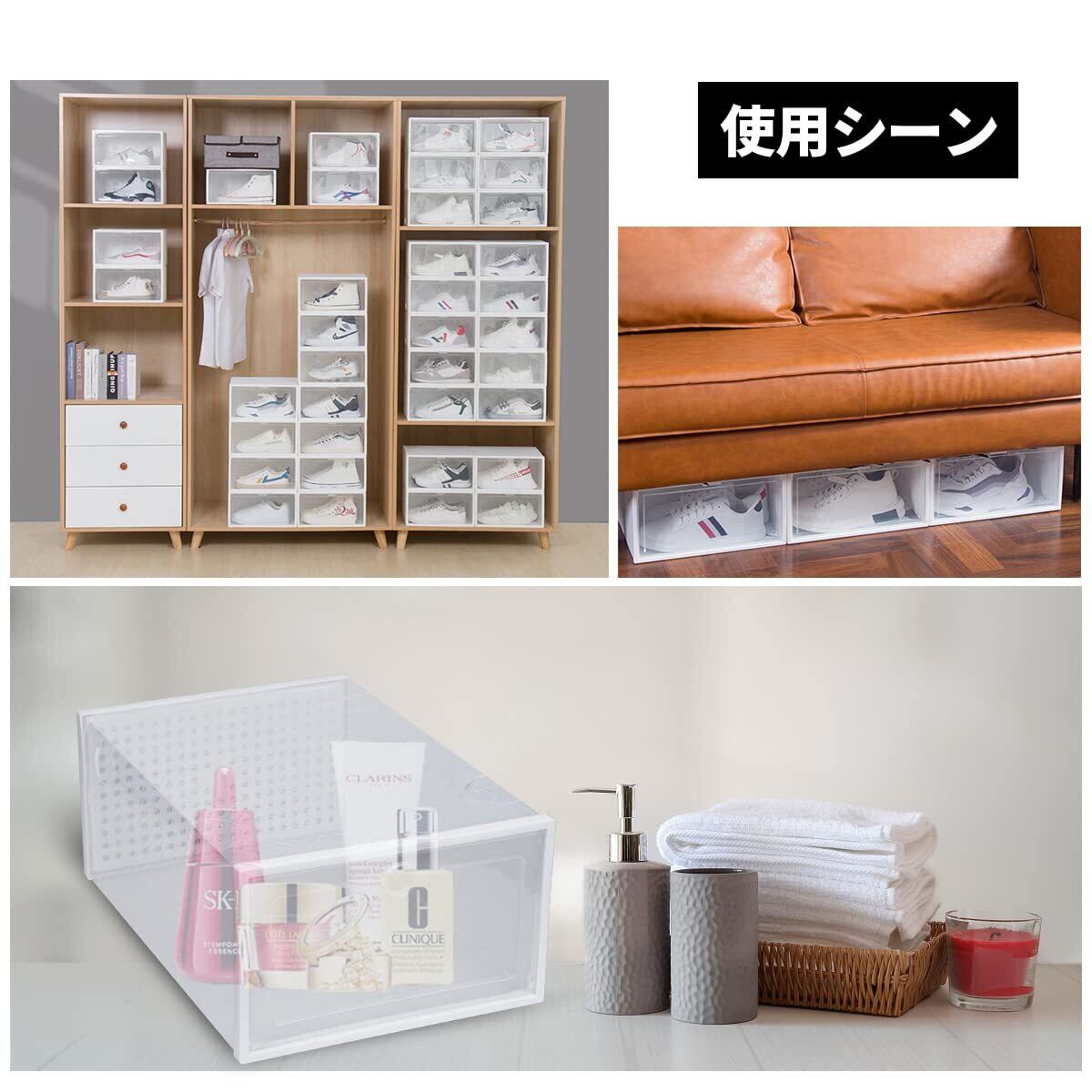 【大容量&多機能】材質は薄くてもすごく丈夫です。内寸法は大きくなります。収納スペースが増えます。33*23*14cm(1個当たり)1個ずつ分けて使える便利な収納ケースを、12個セットでお届け!靴だけでなく、おもちゃ、帽子、本、衣類など日常生活の中のさまざまなものをストックすることができます。シューズボックスはポリプロピレン(PP)でできており、透明度が高く、品質がいいです。透明なシューズボックスの中のものが見えるので、ものを探すのに便利です。