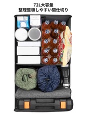 収納力抜群:72L大容量や収納ポケットを多数設置することで小さいものの収納や種類別にわけることも可能です。トラックの荷物の収納や、買物したものを入れたりと、そのまま置いては安定していないものを収納することで、車の中でも安定できる。