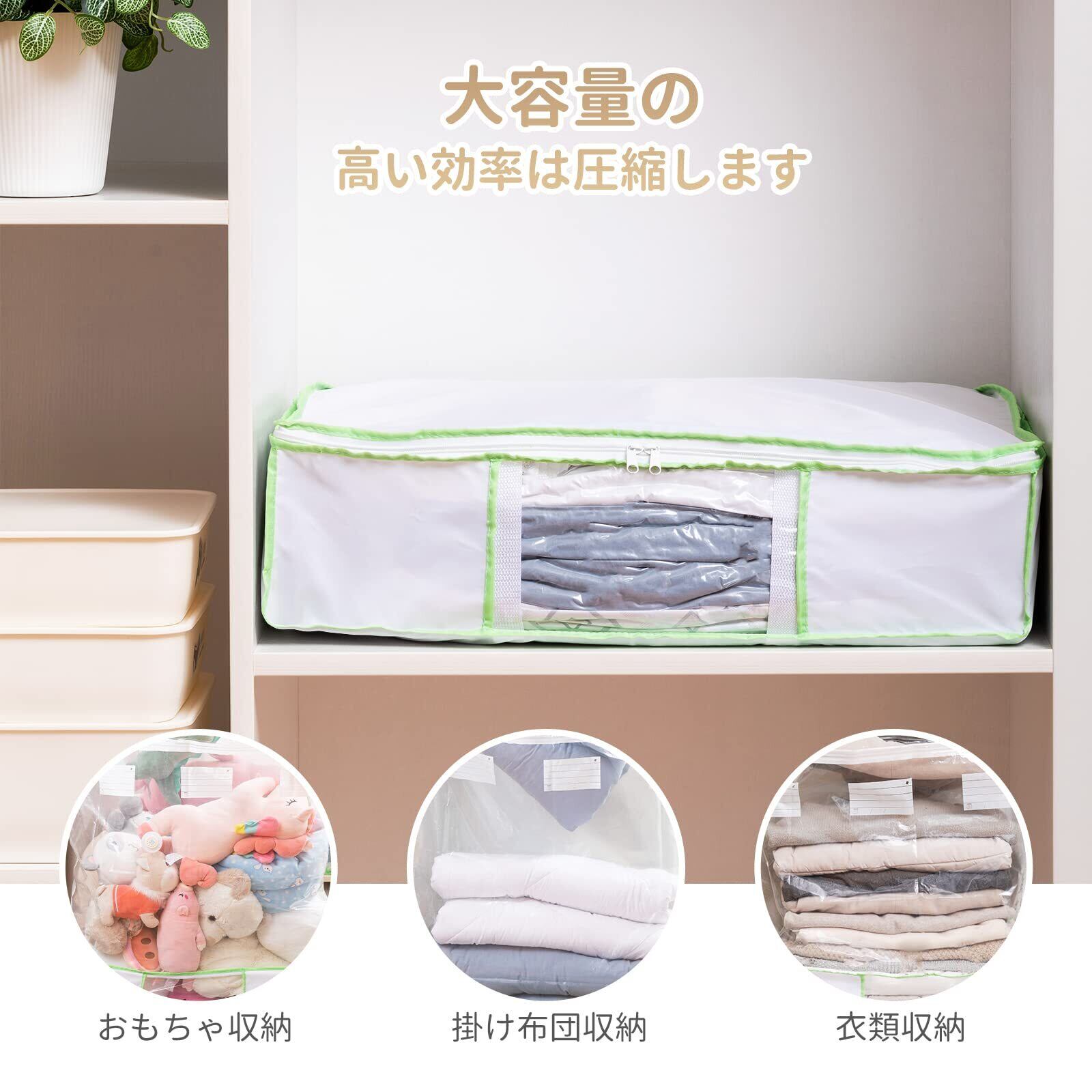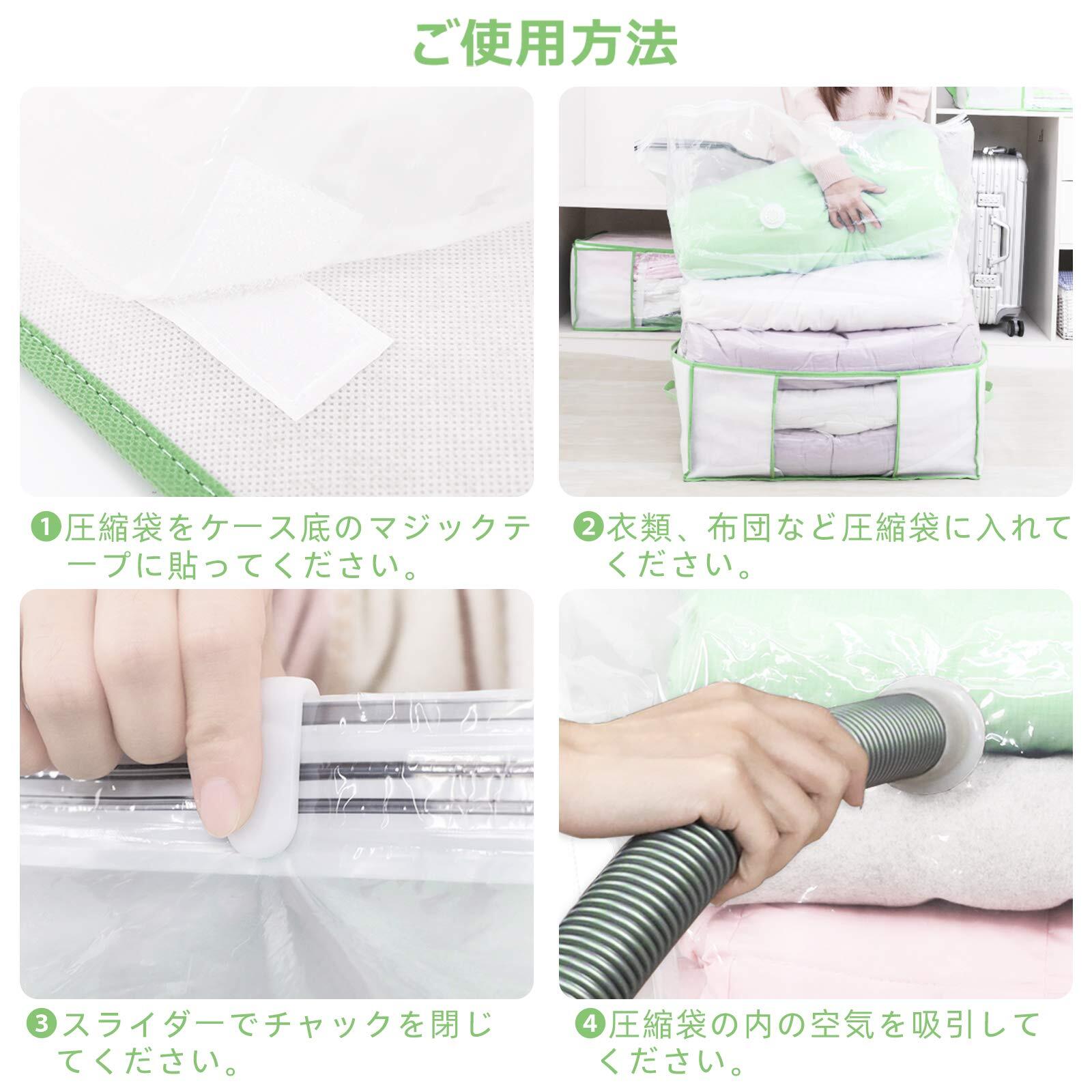 ✌【大容量】収納ケース:65*50*15.5cm 圧縮袋:100*70*44cm 圧縮袋と収納ケースが一体に、クローゼット内もすっきりキレイに収納できます。ダブル掛け布団(2.5㎏)~2枚 収納可能