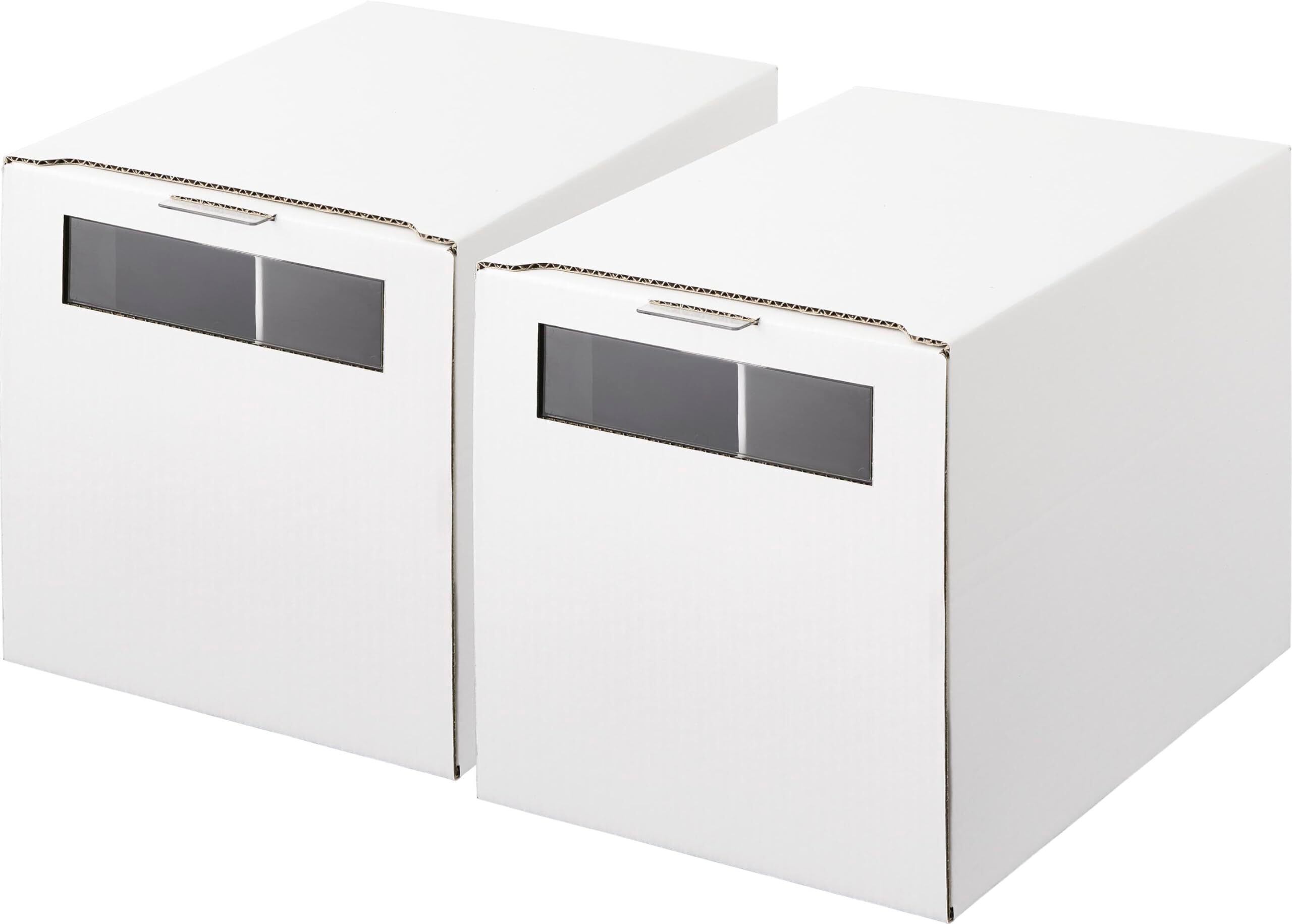 山崎実業(Yamazaki) 窓付き シューズボックス 2個組 トール ホワイト 約W24×D33×H24cm(取っ手含む) タワー tower 靴 収納ボックス 収納ケース 4756