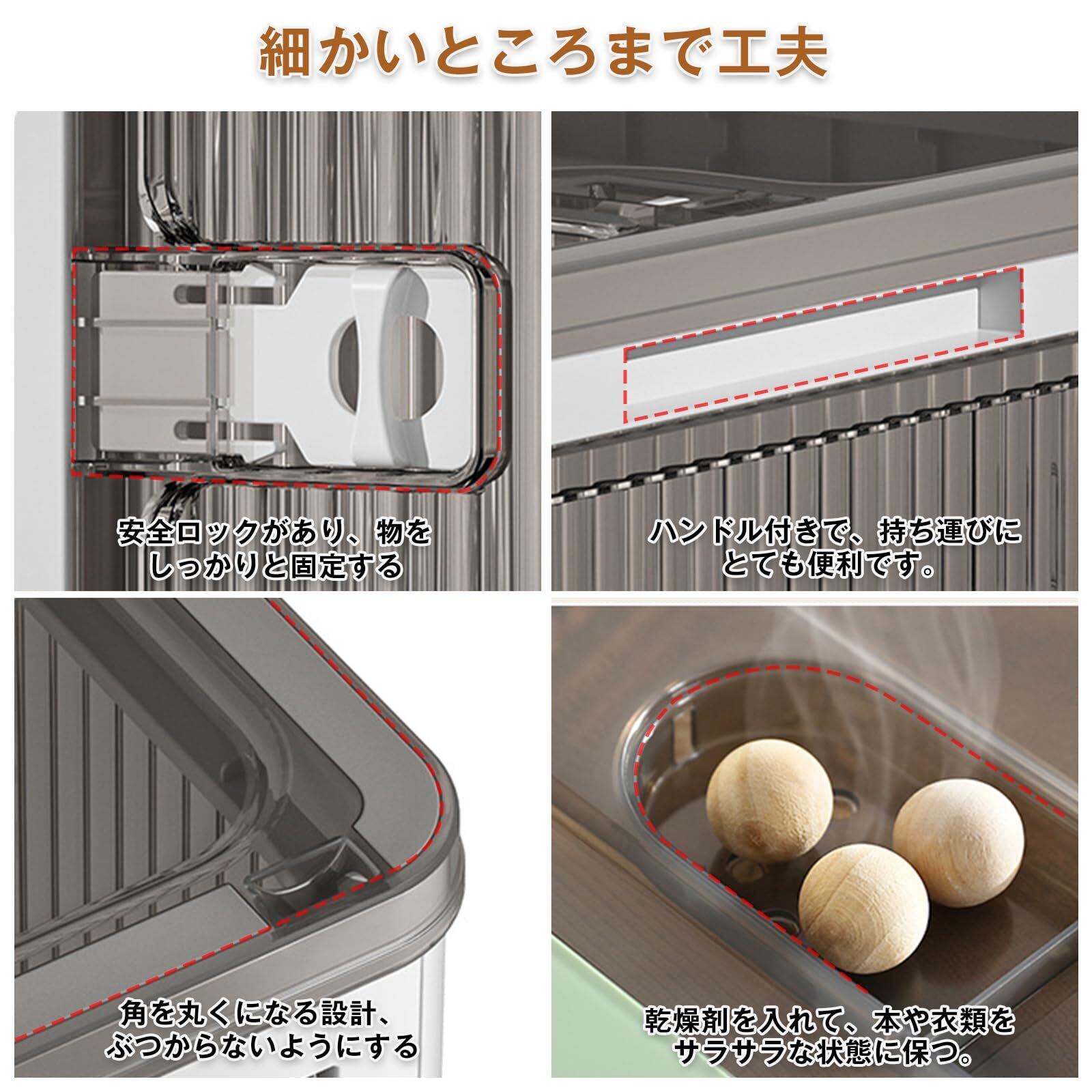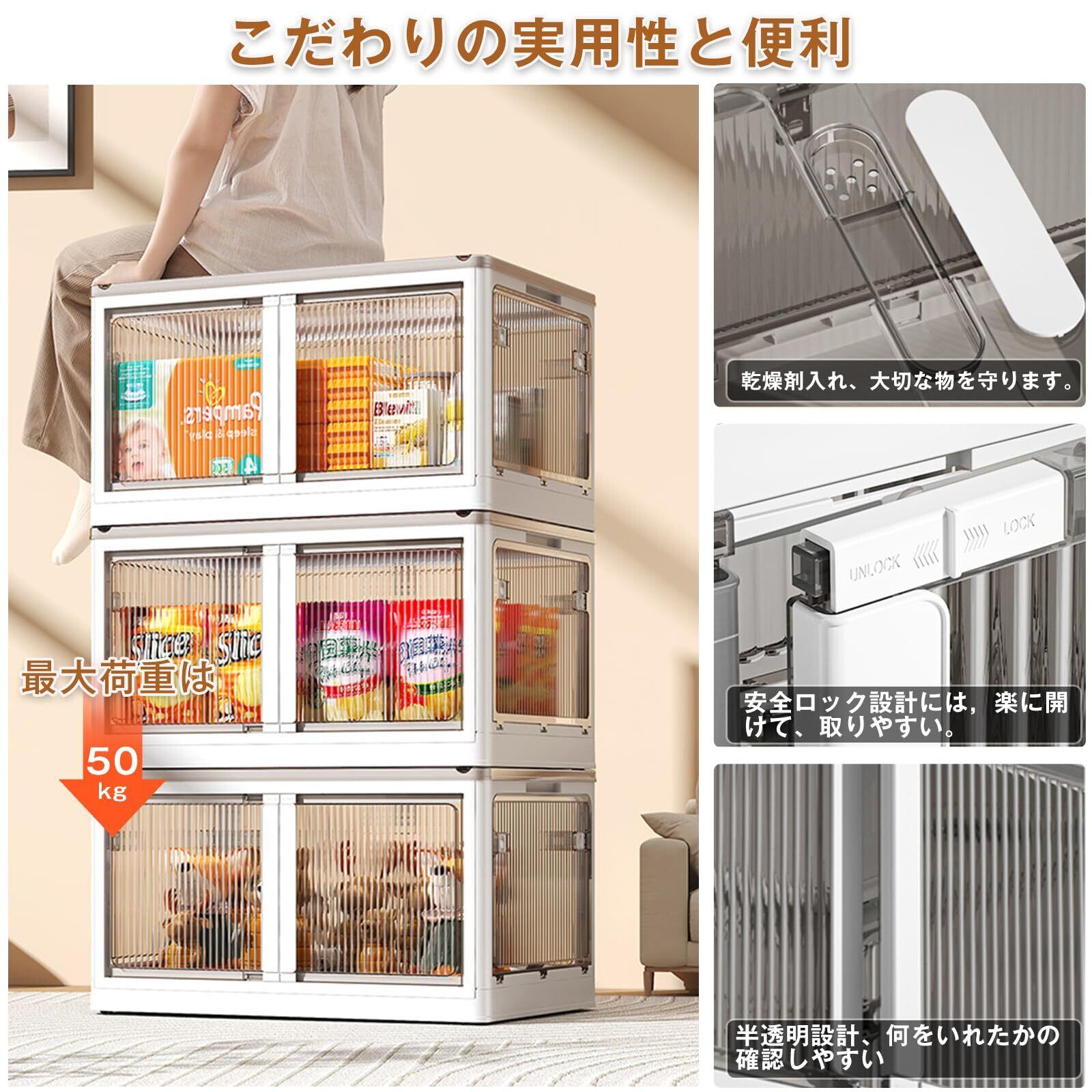 【半透明&安全ロック設計】四方は半透明なので中身丸見えということでもなくうっすら中身を確認できるので何をいれたかの確認もしやすいです。5方面も安全ロックがあり、物を取るときにすぐに開けることができ、普段は子供の誤操作を防ぐことができ、3歳以下の子供がいる家庭では安心して使うことができます。
