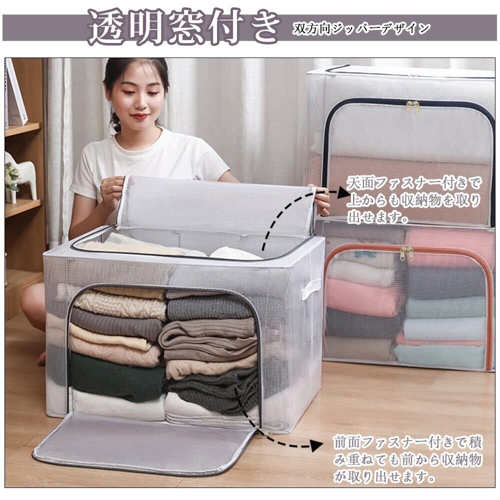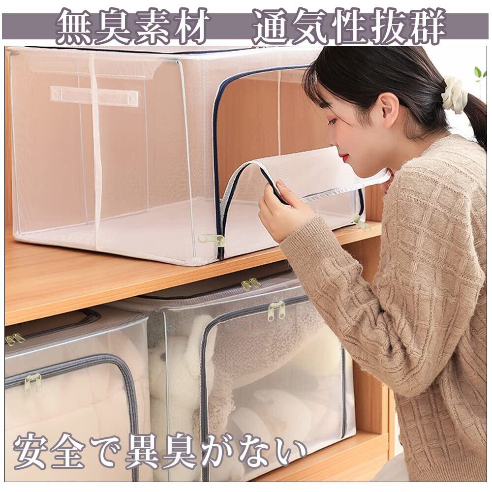 衣類収納 収納ケース 66L 衣装ケース 無臭綿麻 透明窓付き 多機能収納ケース 内側撥水加工 防塵 防湿 無臭 取っ手付き 衣類収納バッグ 鉄骨で支える 積み重ねでき 折りたたみ式 スペースを節約 大容量 布団 洋服 収納 衣類収納ボックス(2個入り)