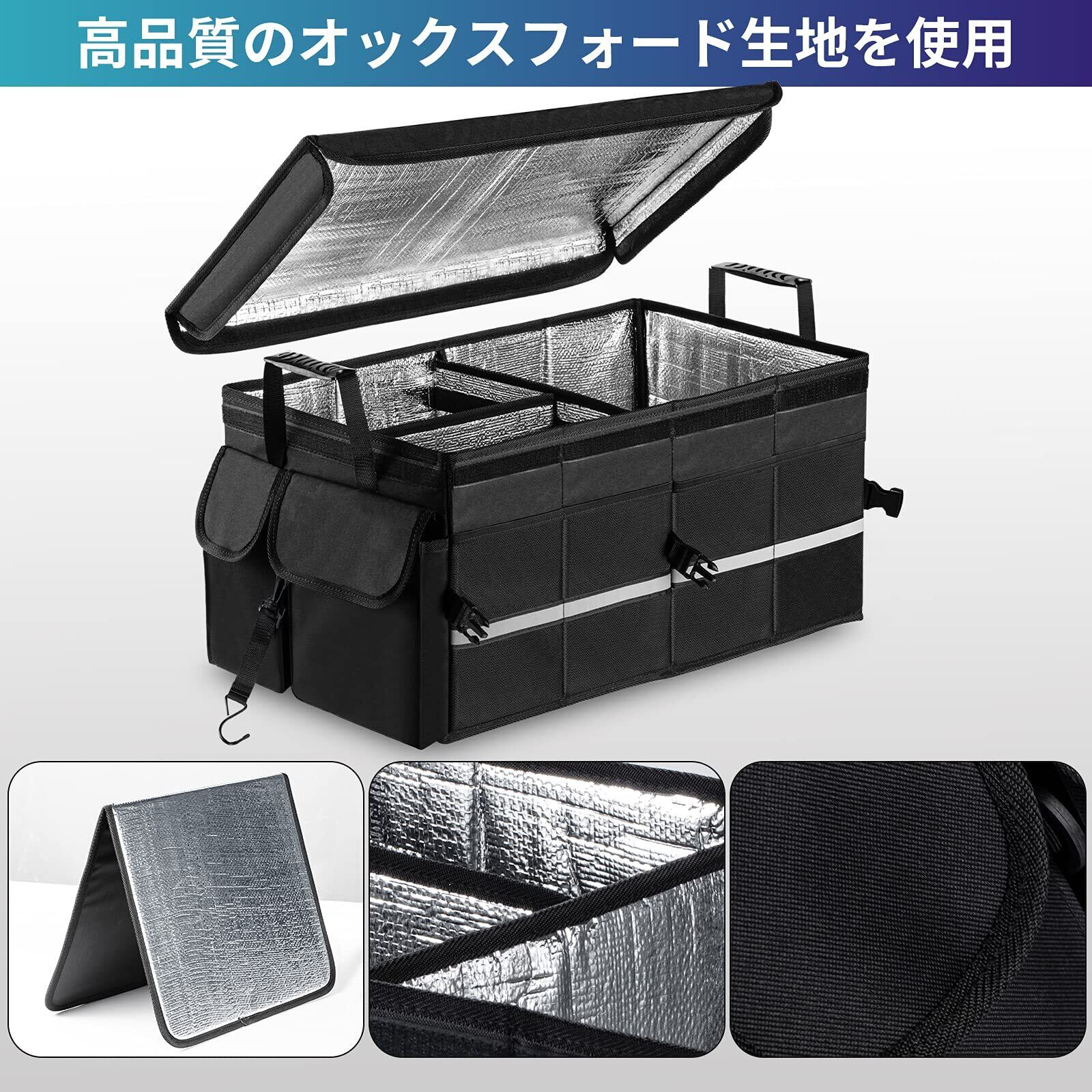 車用収納ボックス 車収納トランク保冷 保温 蓋付き トランク 折り畳み式 大容量 滑り止め 小物整理 取っ手 トラック/SUV/軽自動車などの大中小型車に適用 68L(ブラック 60*38*30cm)