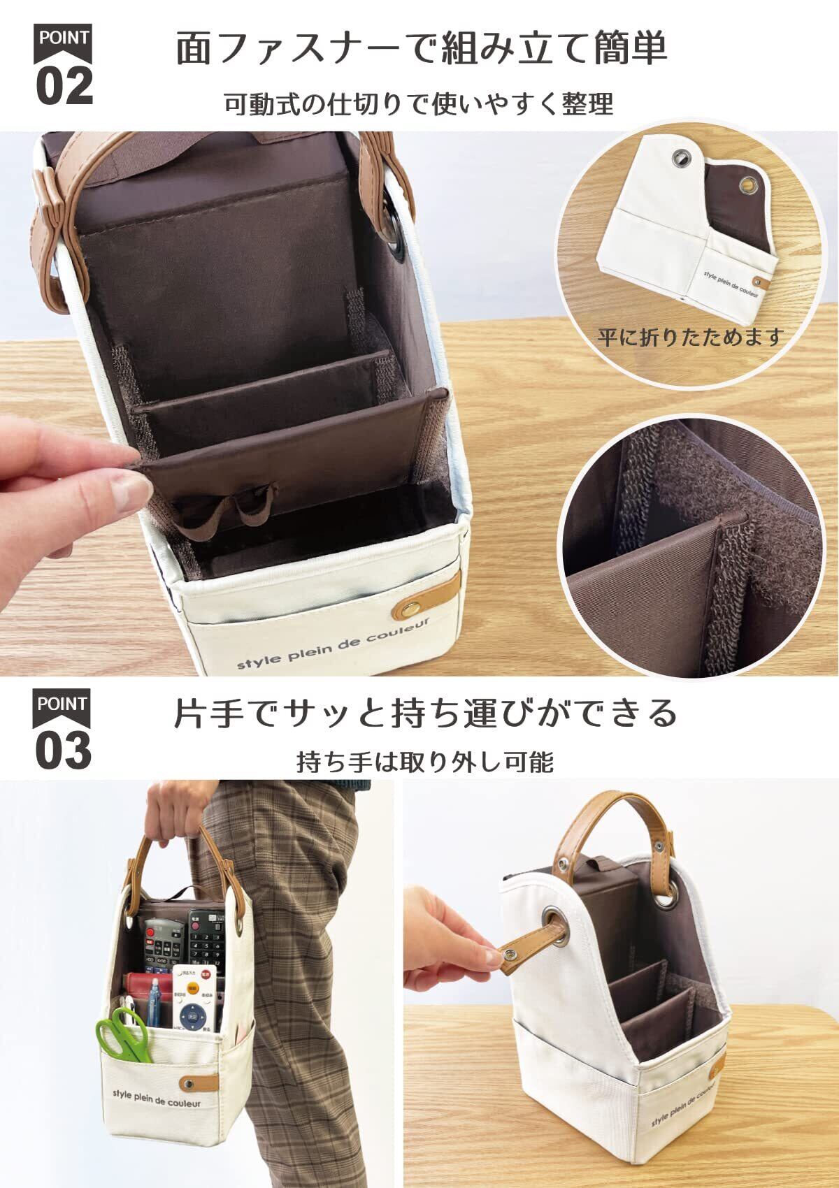 ⬛️【組み立て簡単】底板を入れて仕切りを面ファスナーで固定するだけの簡単組み立て。仕切りは可動式で入れる物のサイズに合わせて幅を微調整できます。取り外し出来る持ち手付き。片手でサッと持ち運びできます。