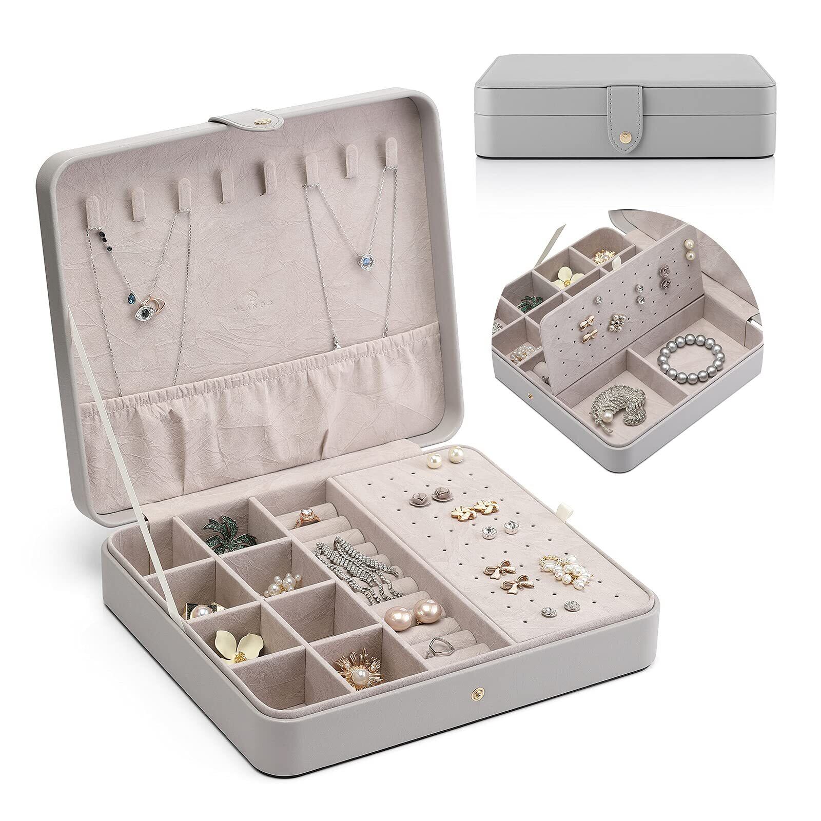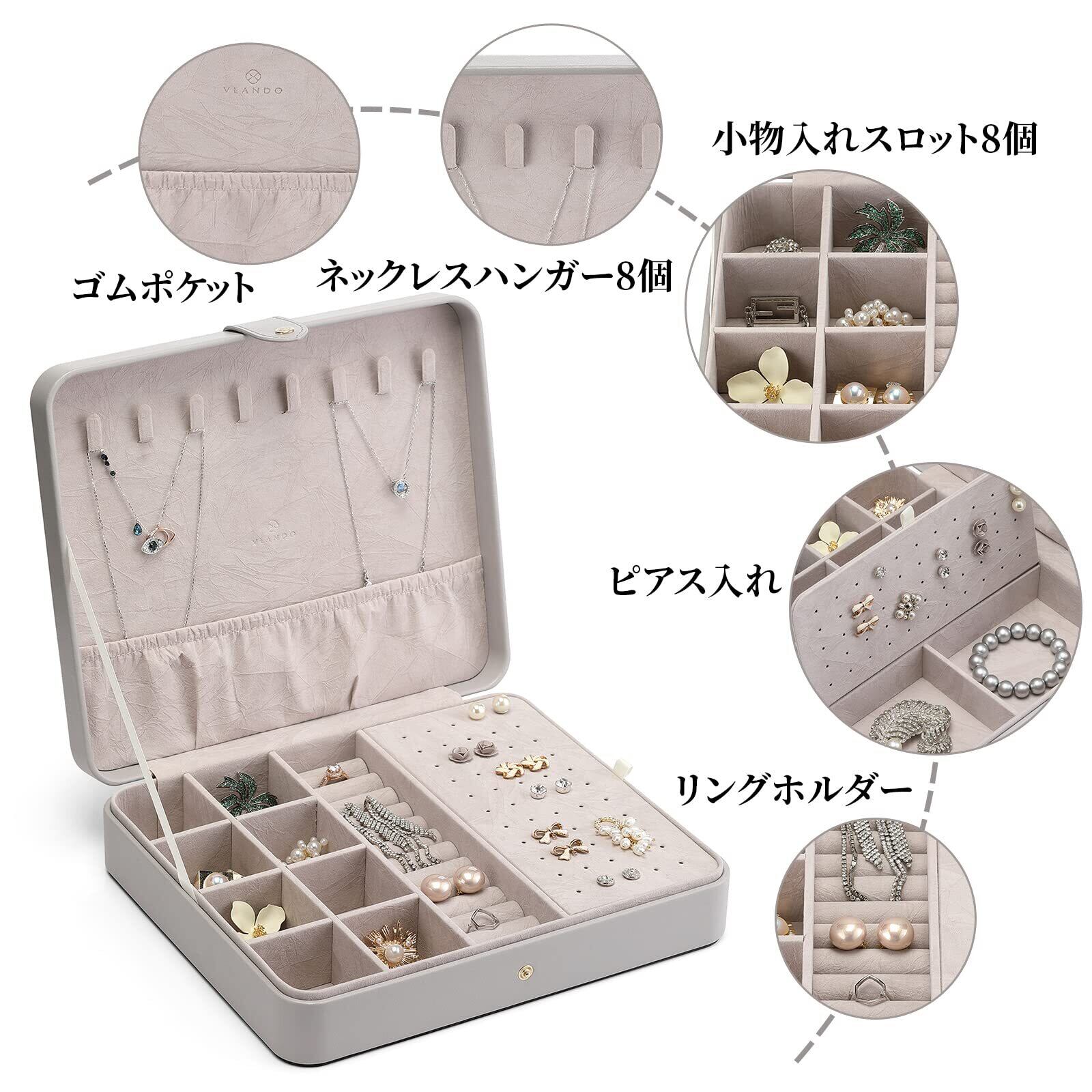 Vlando ジュエリーボックス 携帯用 アクセサリーケース 小物入れ ピアス 指輪 大容量 アクセサリー 着脱式仕切り 収納 プレゼント(グレー)